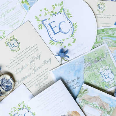Elevate your every day Celebration or your Wedding Suite and event with hand-painted artwork and monograms, created separately and designed to flow seamlessly through every detail.