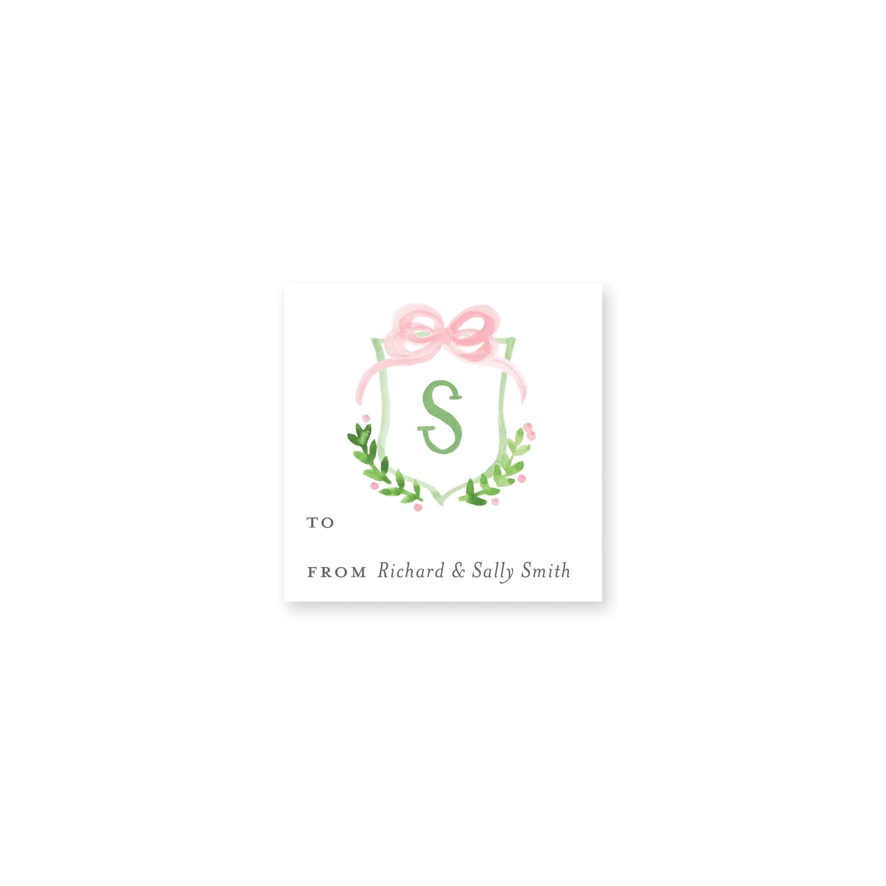 Our Watercolor Crest With Big Bow Christmas Gift Stickers will look beautiful on your Christmas gifts. Choose from red or blue.