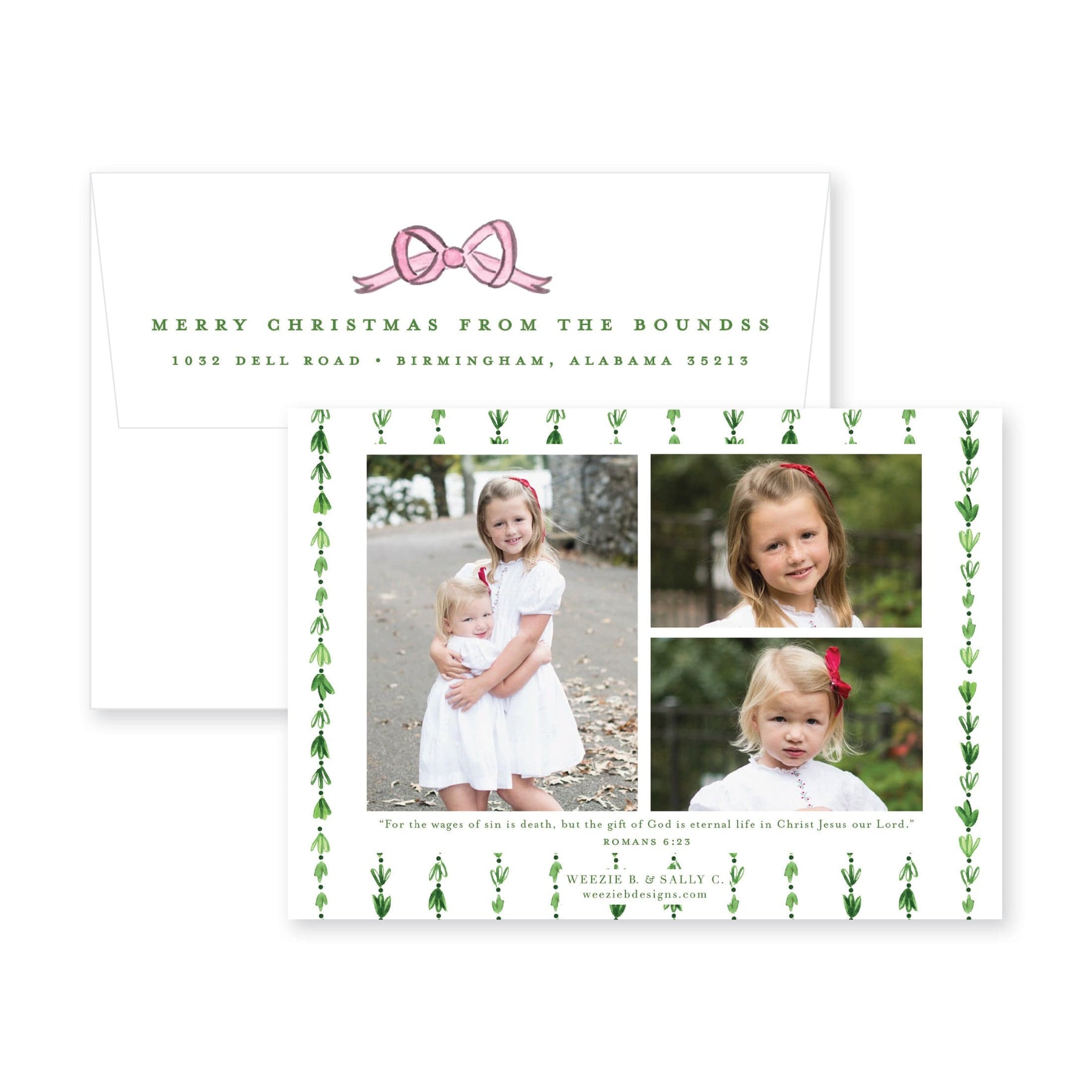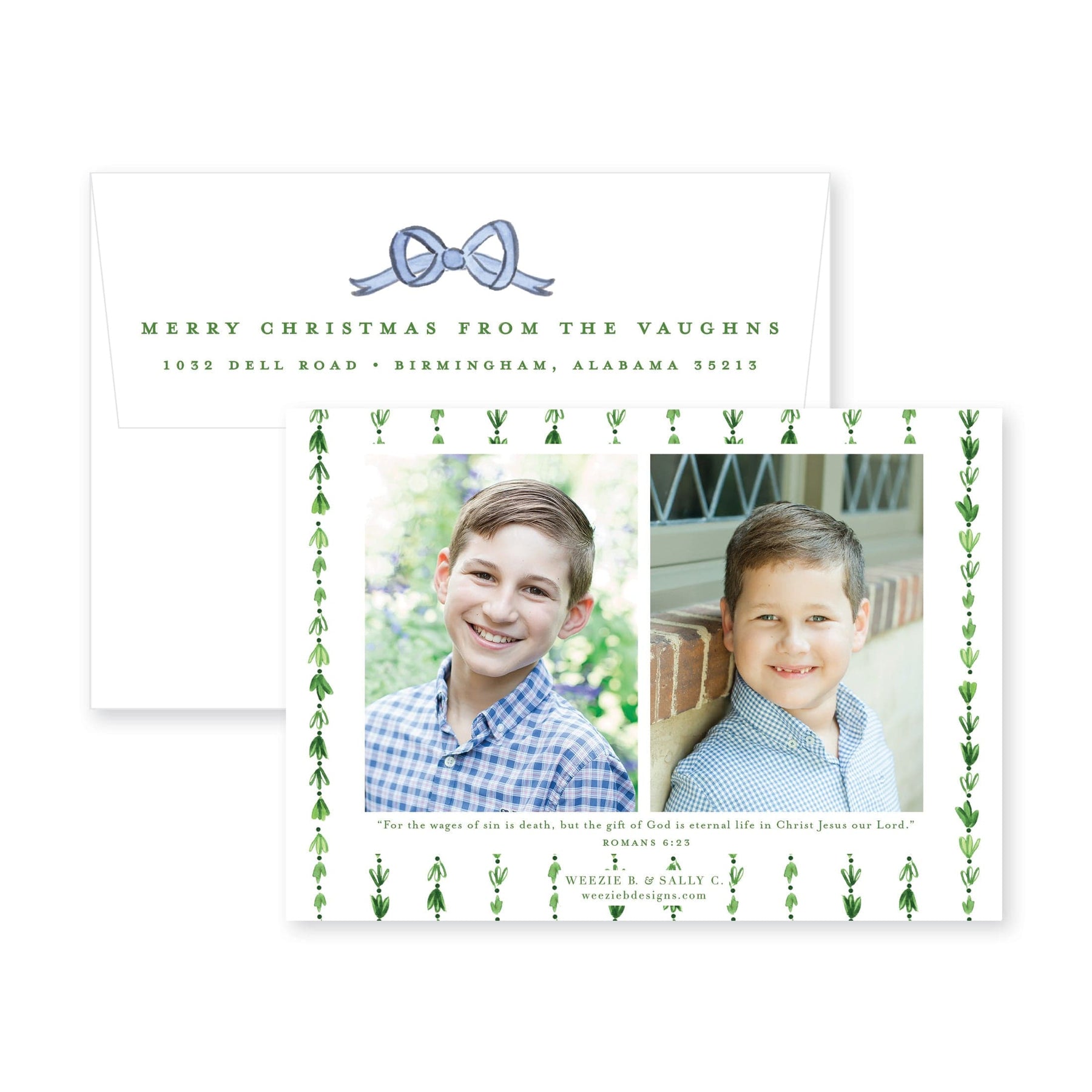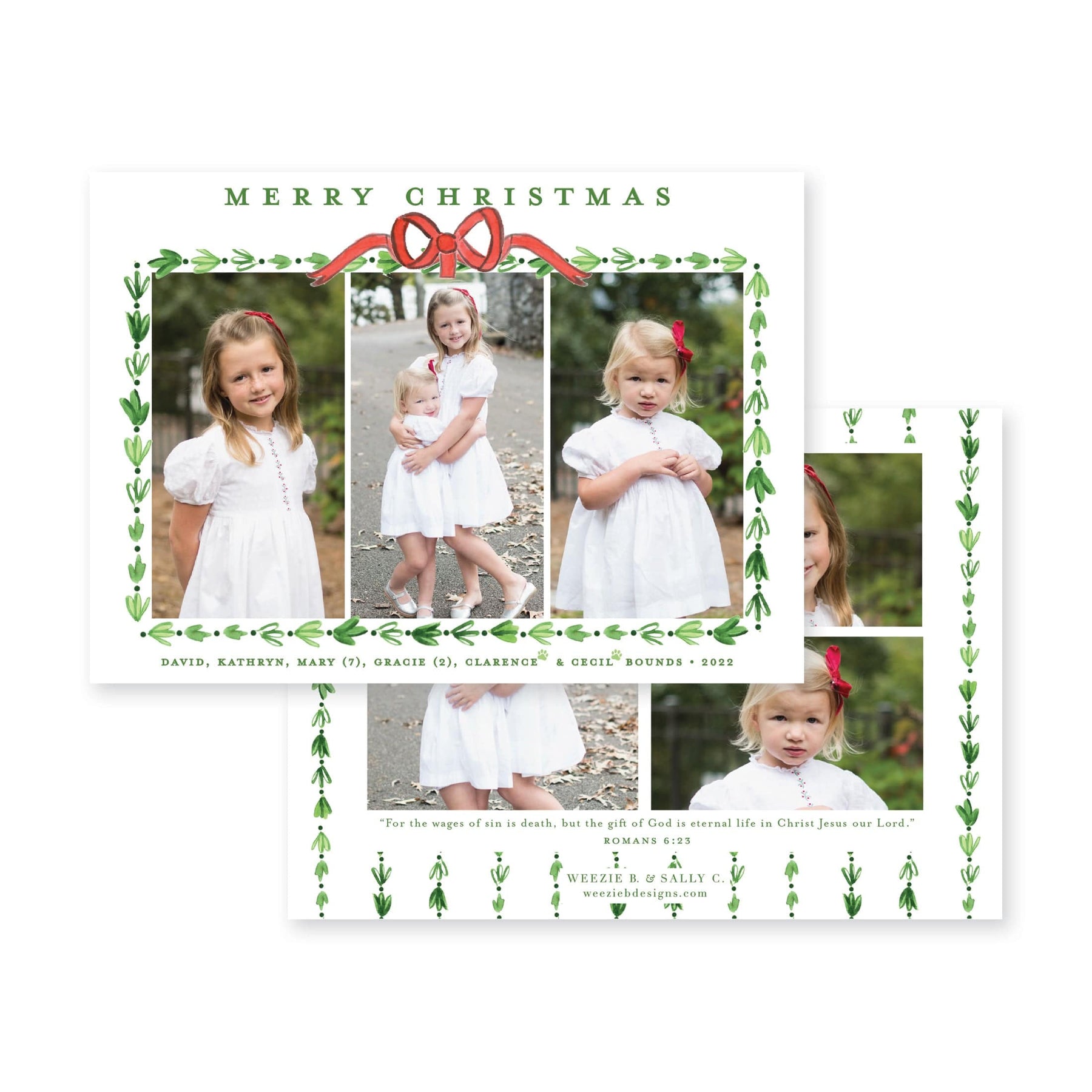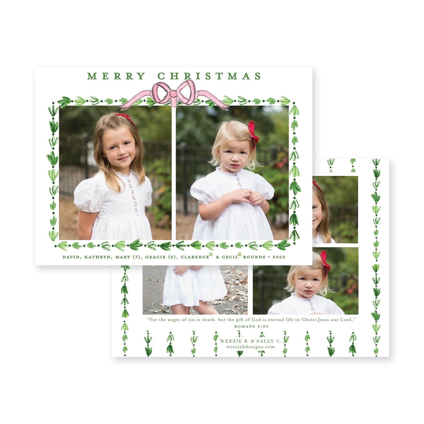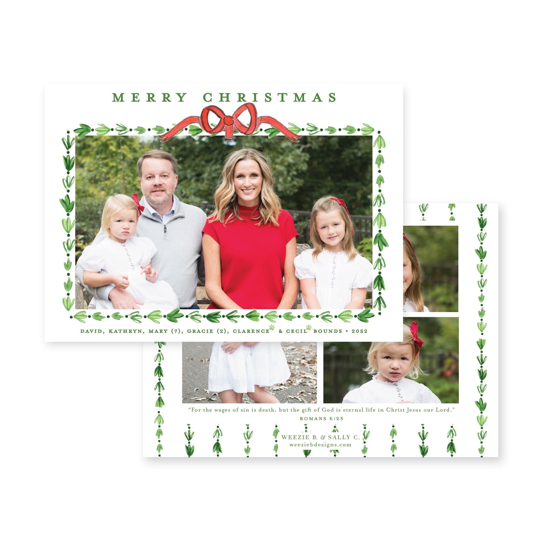 Our Dainty Greenery with Bow Horizontal Christmas Card features your photo on the front with a pretty watercolor greenery border. Our watercolor bow at the top is the icing on the cake!