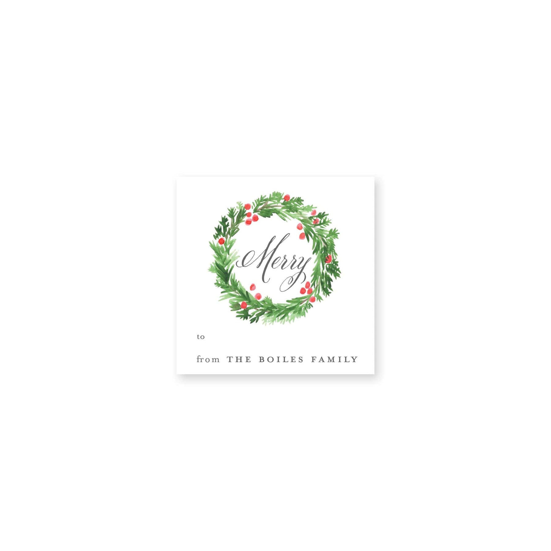 Evergreen Wreath With Berries Gift Stickers will be festive and beautiful for most types of packages!