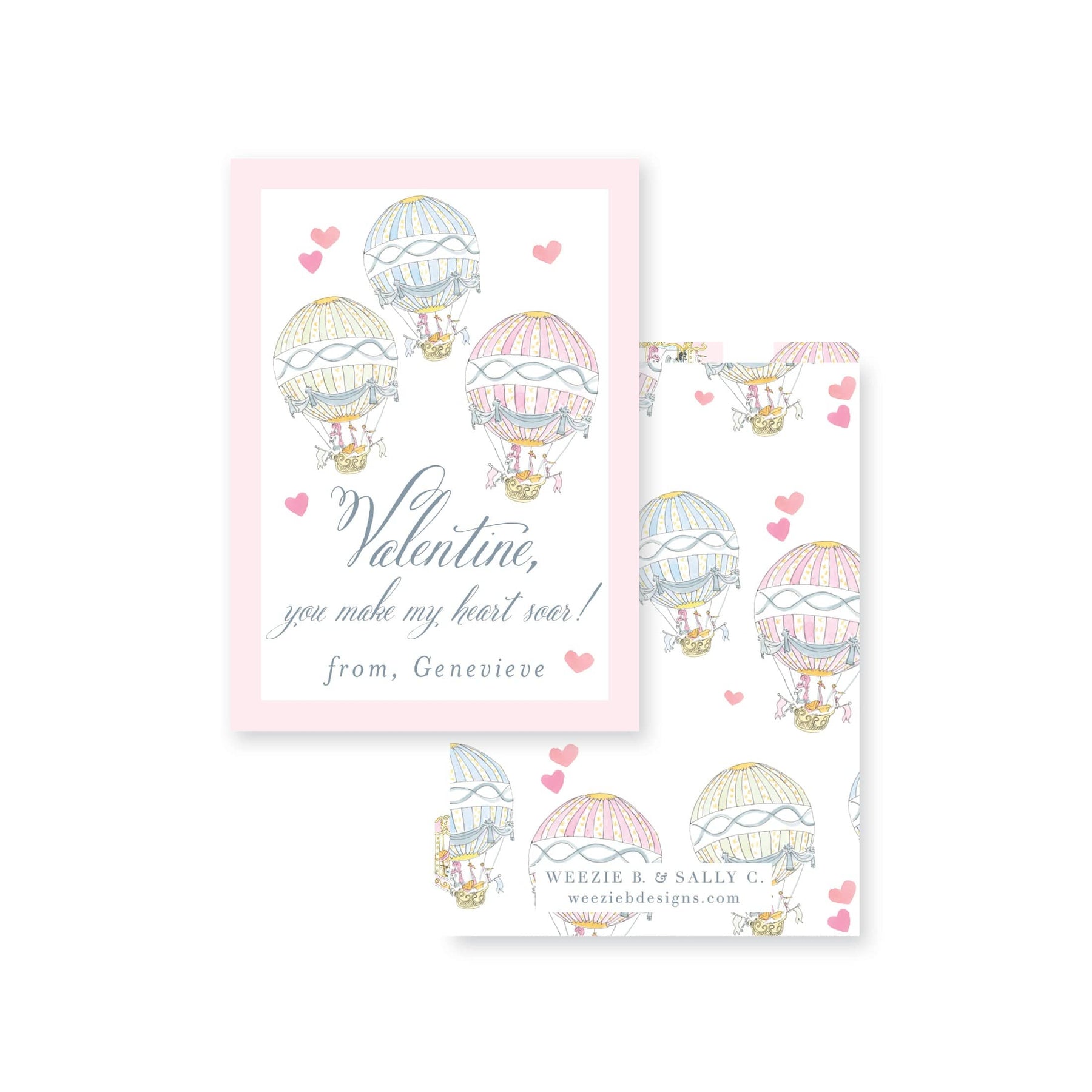 Hot Air Balloon Valentine's Day cards will make your little friends hearts soar! Our watercolor, whimsical hot air balloons and hearts will look adorable attached to a balloons or any special treat!