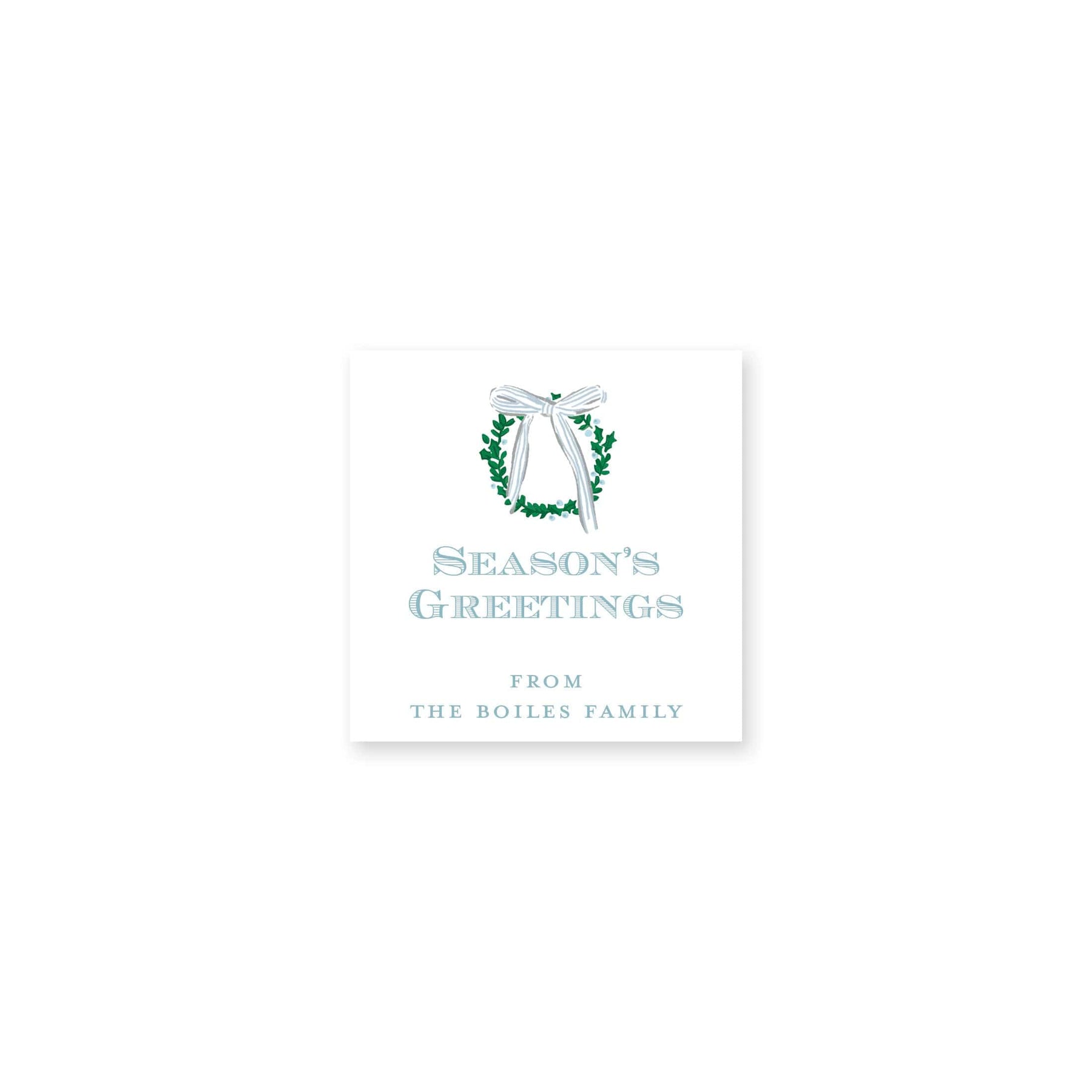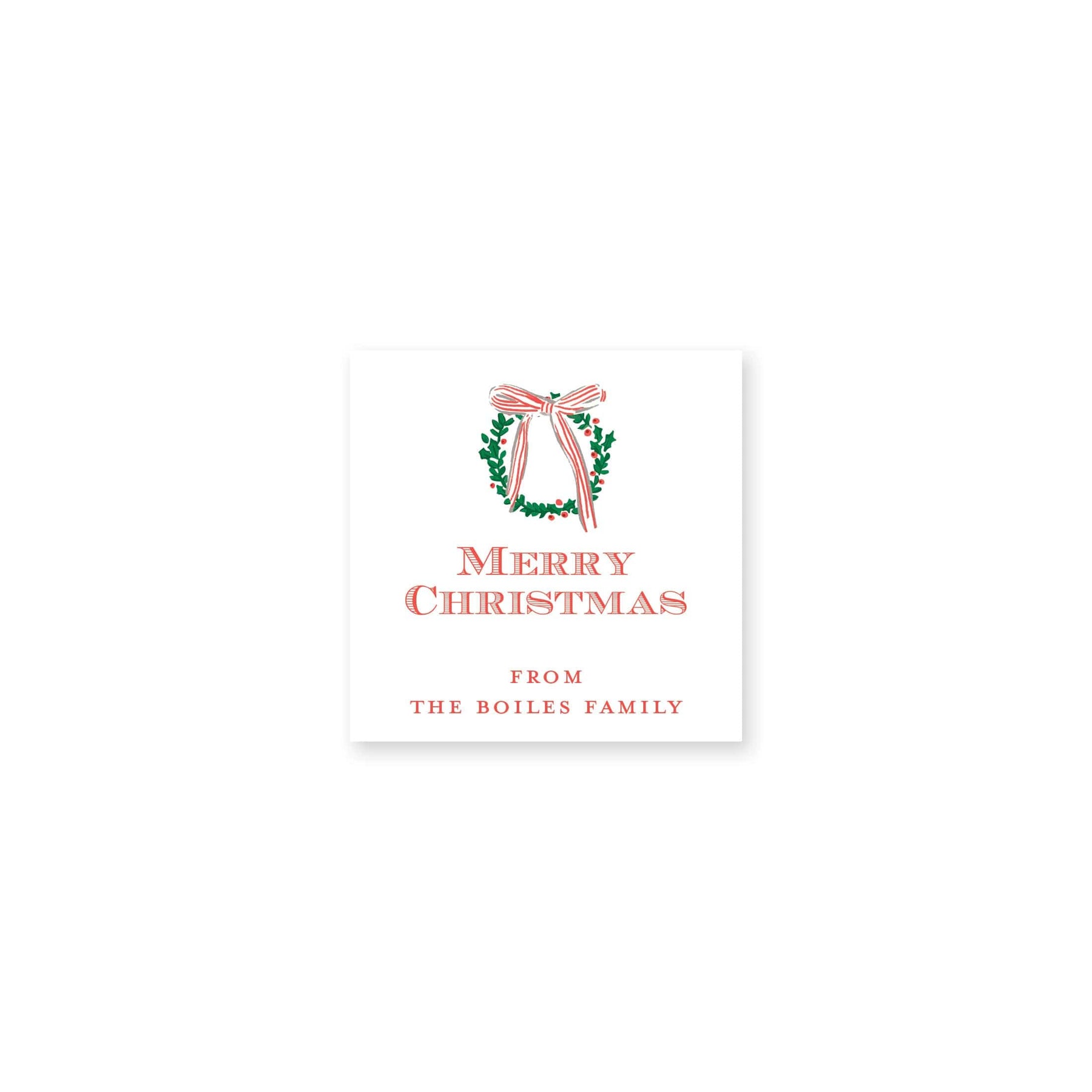 Simple Christmas Wreath Bow Stickers feature our watercolor crest with pine, holly and a reindeer with your monogram in the center. These stickers will be festive and beautiful for most types of packages!