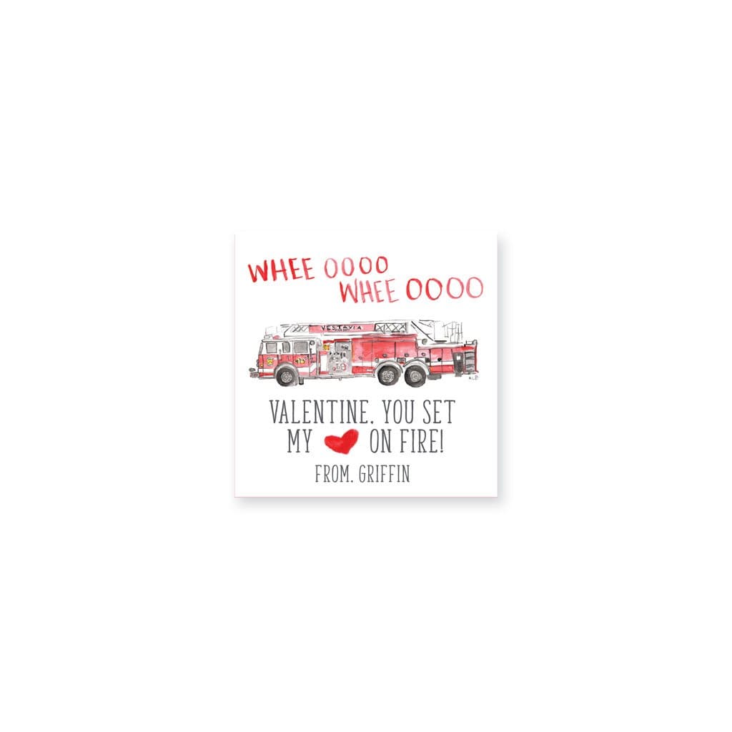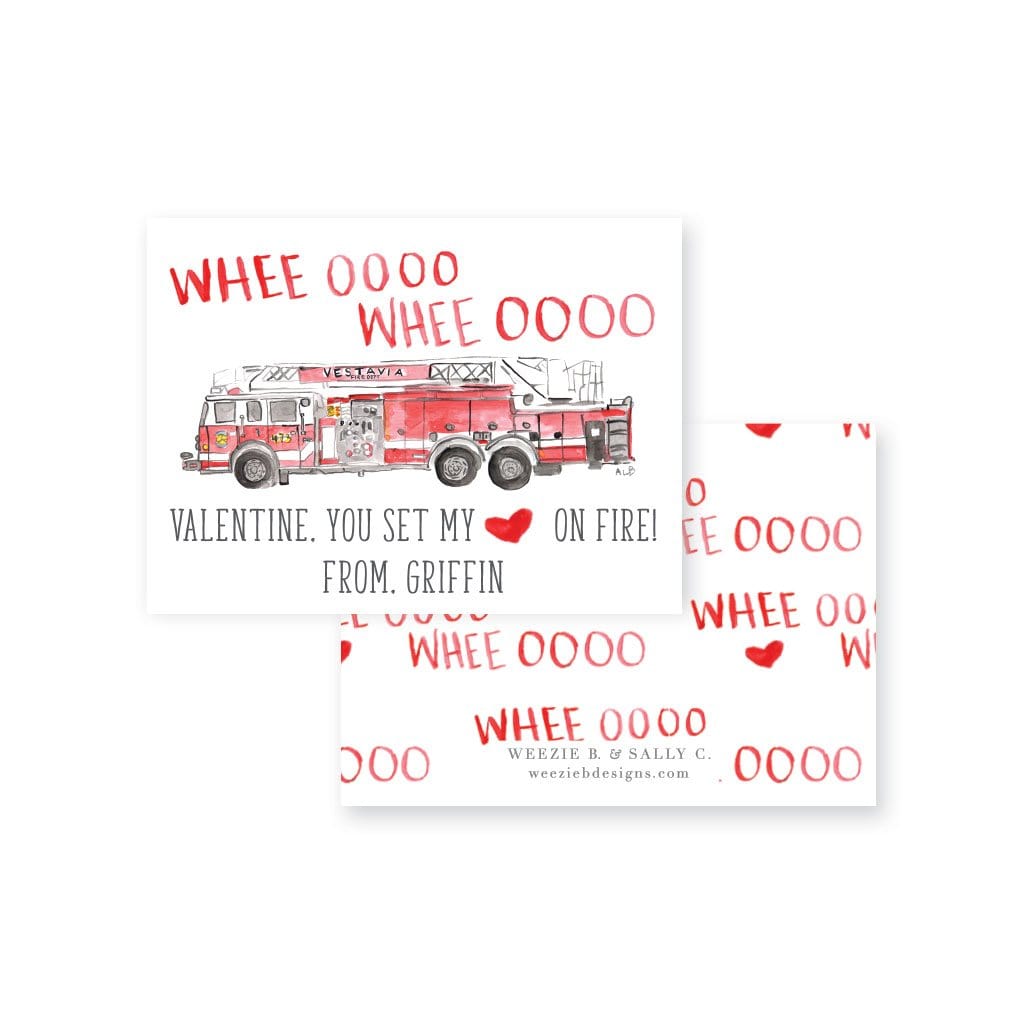 Our Watercolor Firetruck Valentine's Day cards are perfect for your little fireman! This design is so fun attached to a toy firetruck or a heart shaped treat!