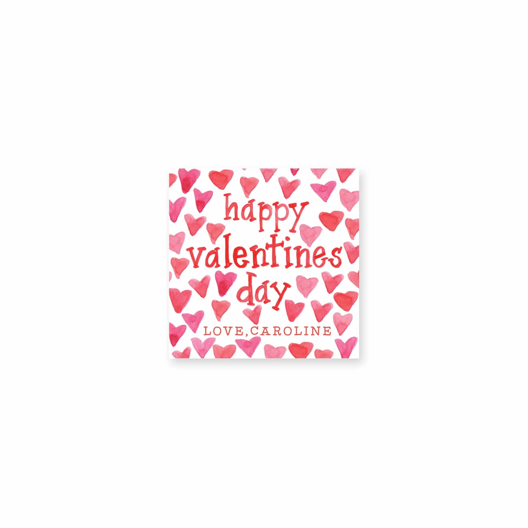 Our Watercolor Hearts Valentine's Day cards are hot pinks and red and cute! This design is so fun attached to a toy or a treat!