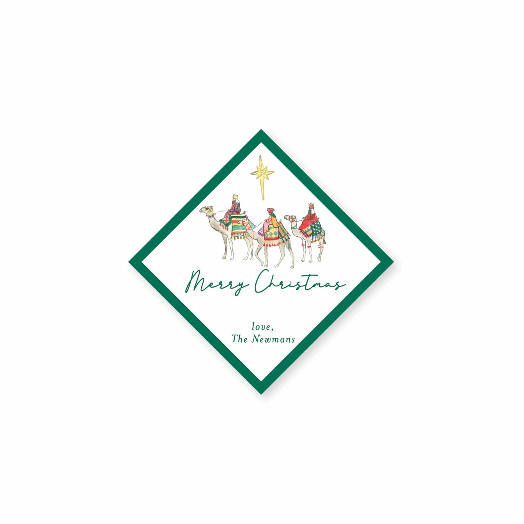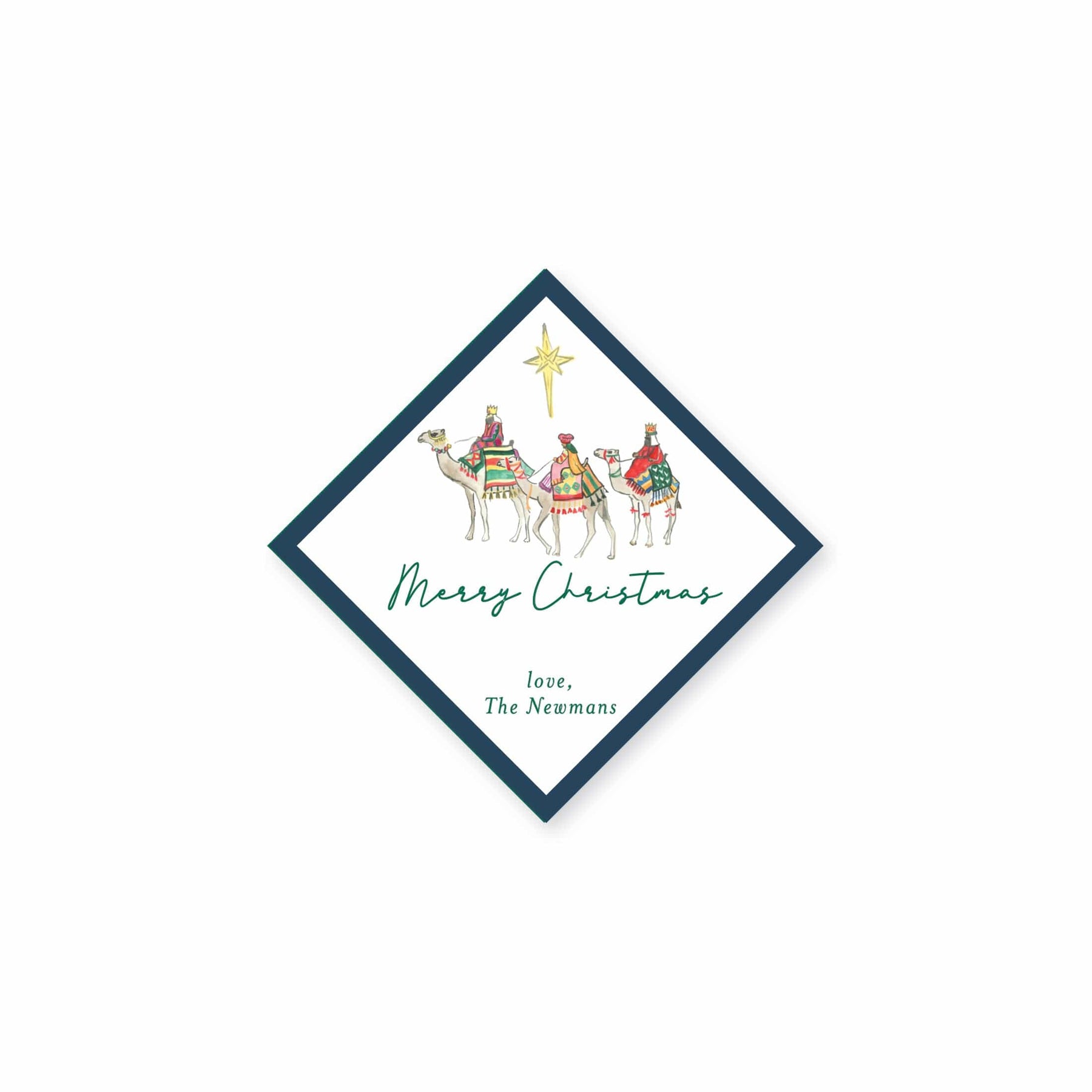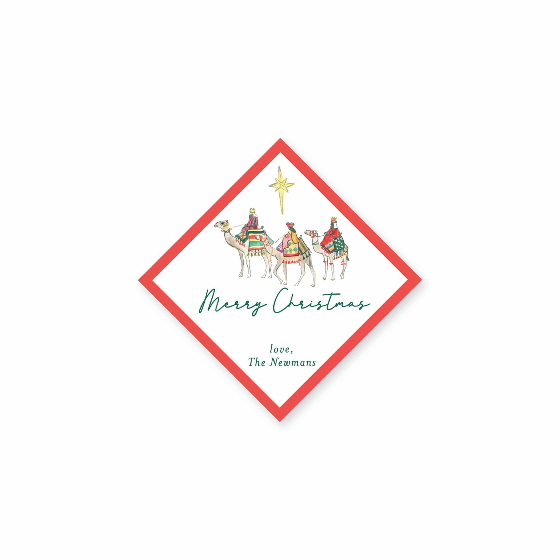Our We Three Kings Christmas Gift Stickers are personalized for you with our Christmas watercolor watercolor of the 3 magi or 3 wise men from the Christmas Story. Classic and traditional and the perfect addition to your wrapping!