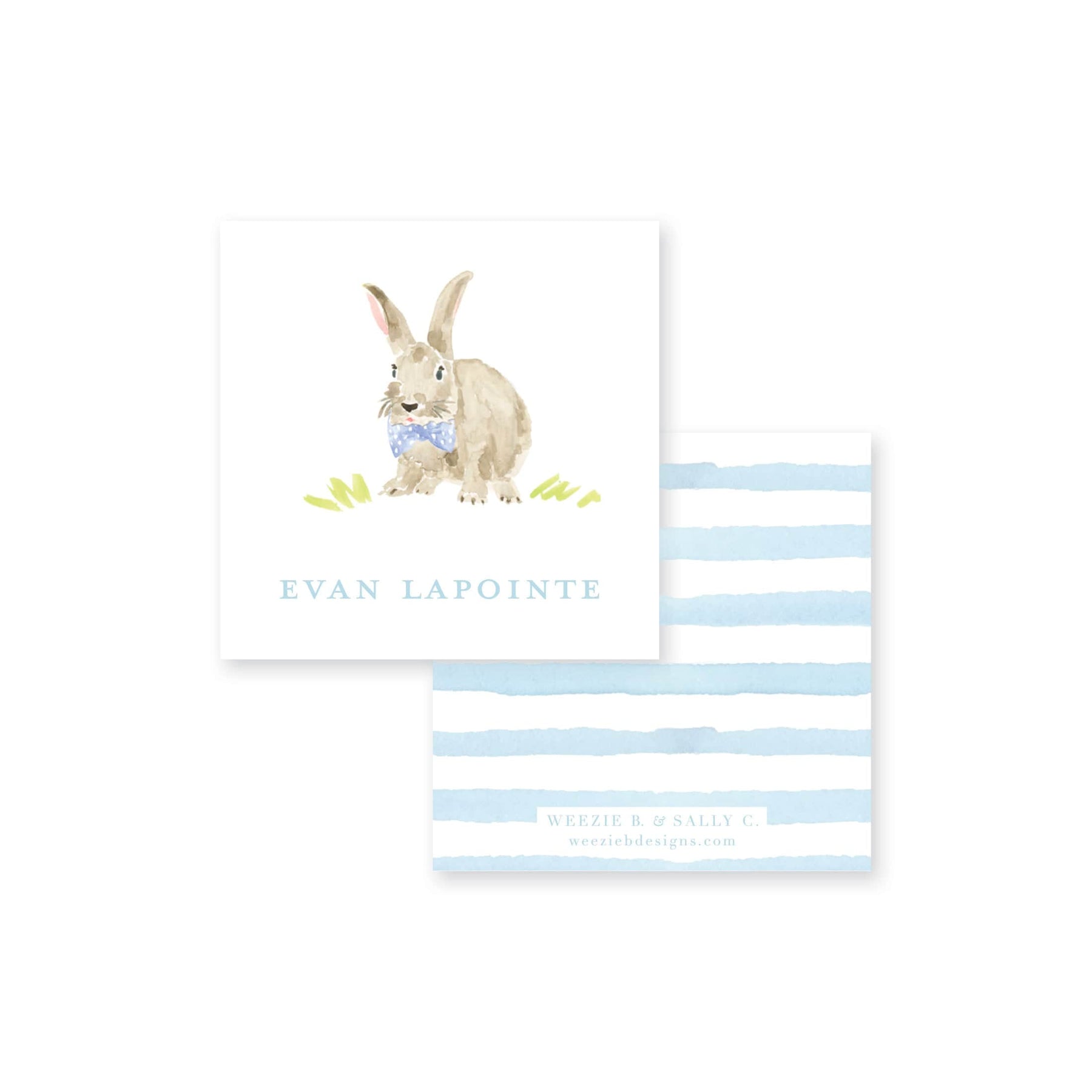 Watercolor Dapper Bunny Calling Card will be a cute addition to your little bunnies paper suite. You can use these enclosure cards for one child or more, just enter the names as you'd like them listed.