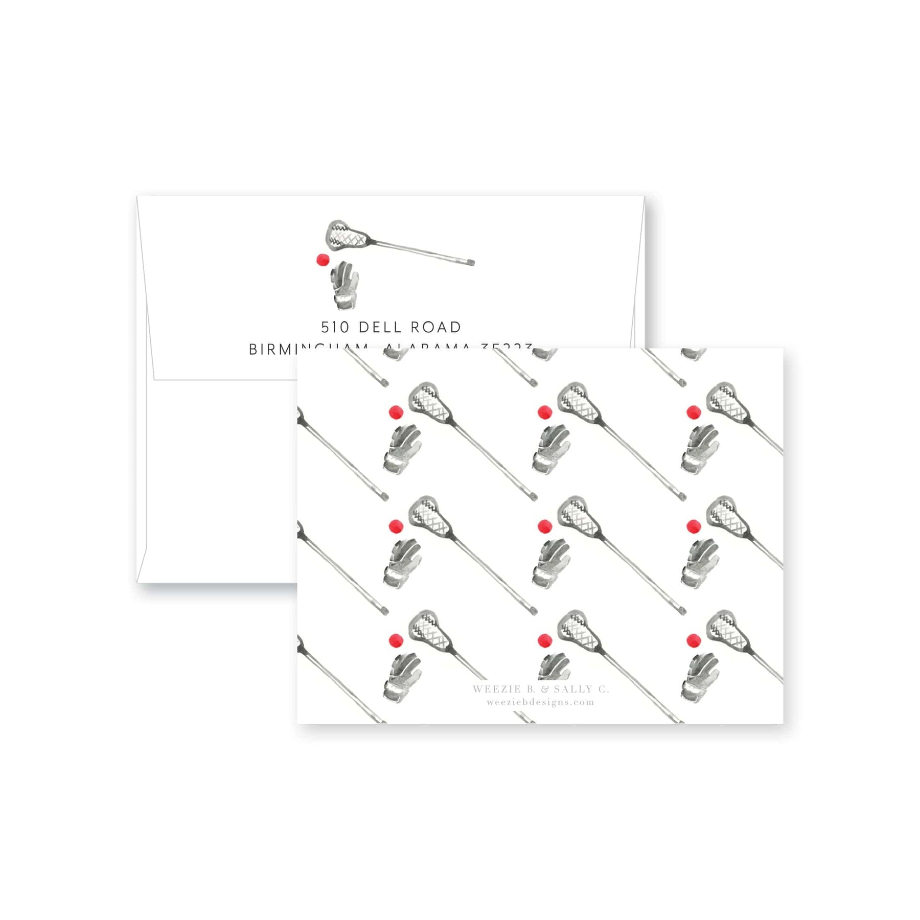 Our Watercolor Lacrosse Personalized Flat Note Card is perfect for your LAX player! For thank you notes or for any thank you- this sweet note card will make a great impression. You can add a first and last name, as shown. Or list the name any way you like it!