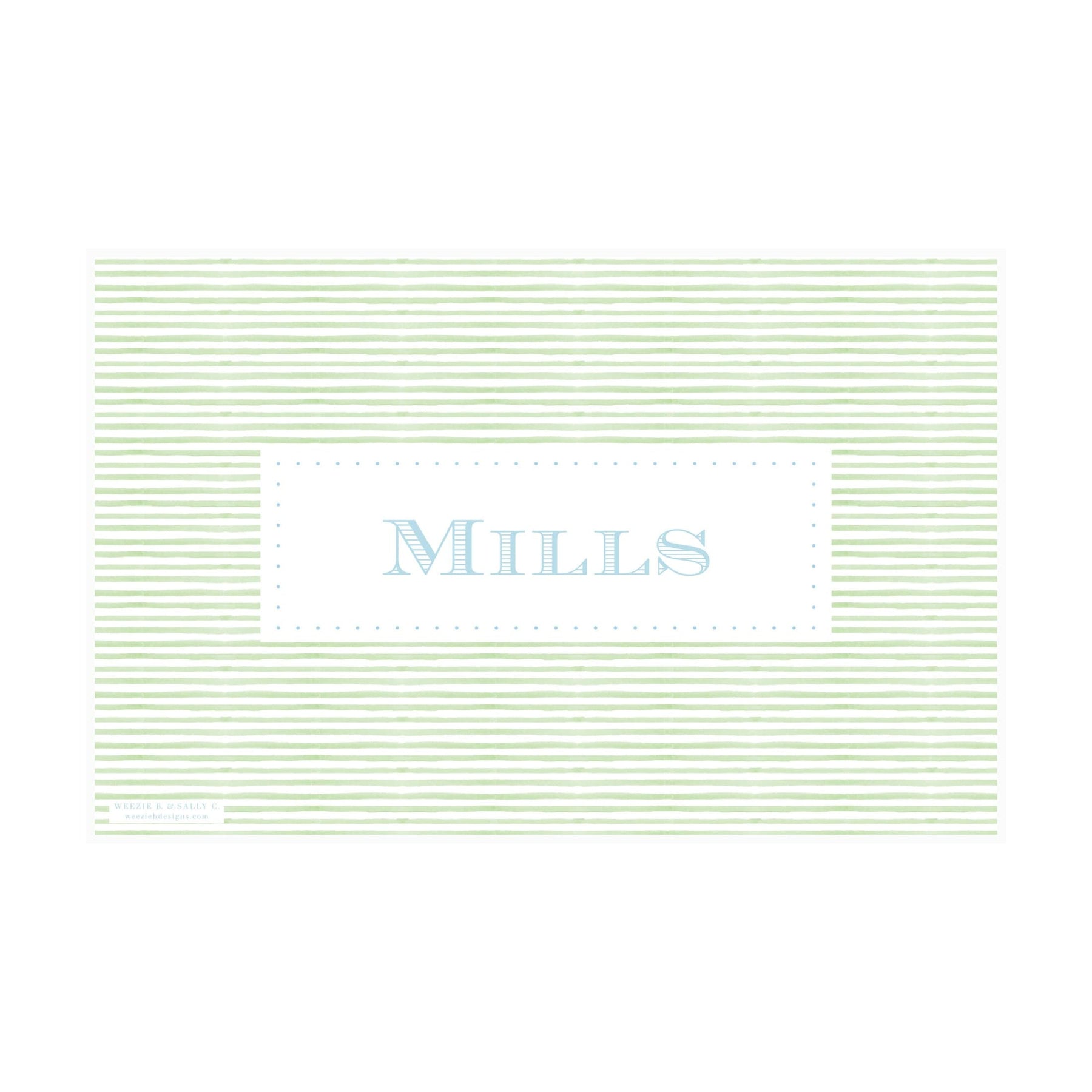 Our Watercolor Dinosaurs March - Stripes Laminated Placemat makes a sweet addition to your table. Your little dino fan will love their fun placemat- and you'll be happy to keep your table a little less messy. The other side features simple stripes with your little ones name in a box in the middle. These Place Mats are laminated so you can wipe and reuse. These personalized place mats make a great and usable gift for any occasion!