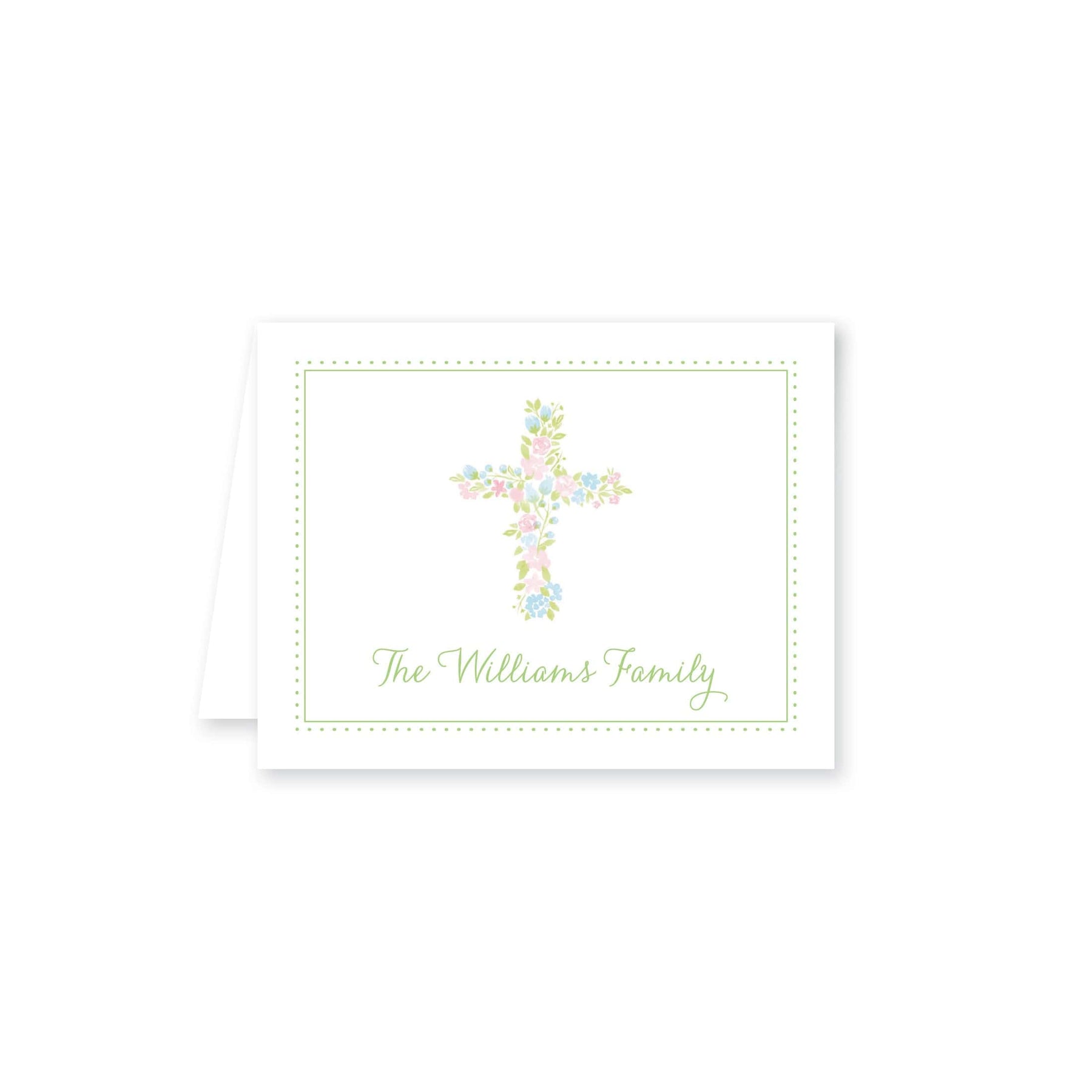 Our Watercolor Floral Cross makes a sweet folded notecard for so many occasions. The pink and blue florals with greenery made into a cross is pretty and elegant.