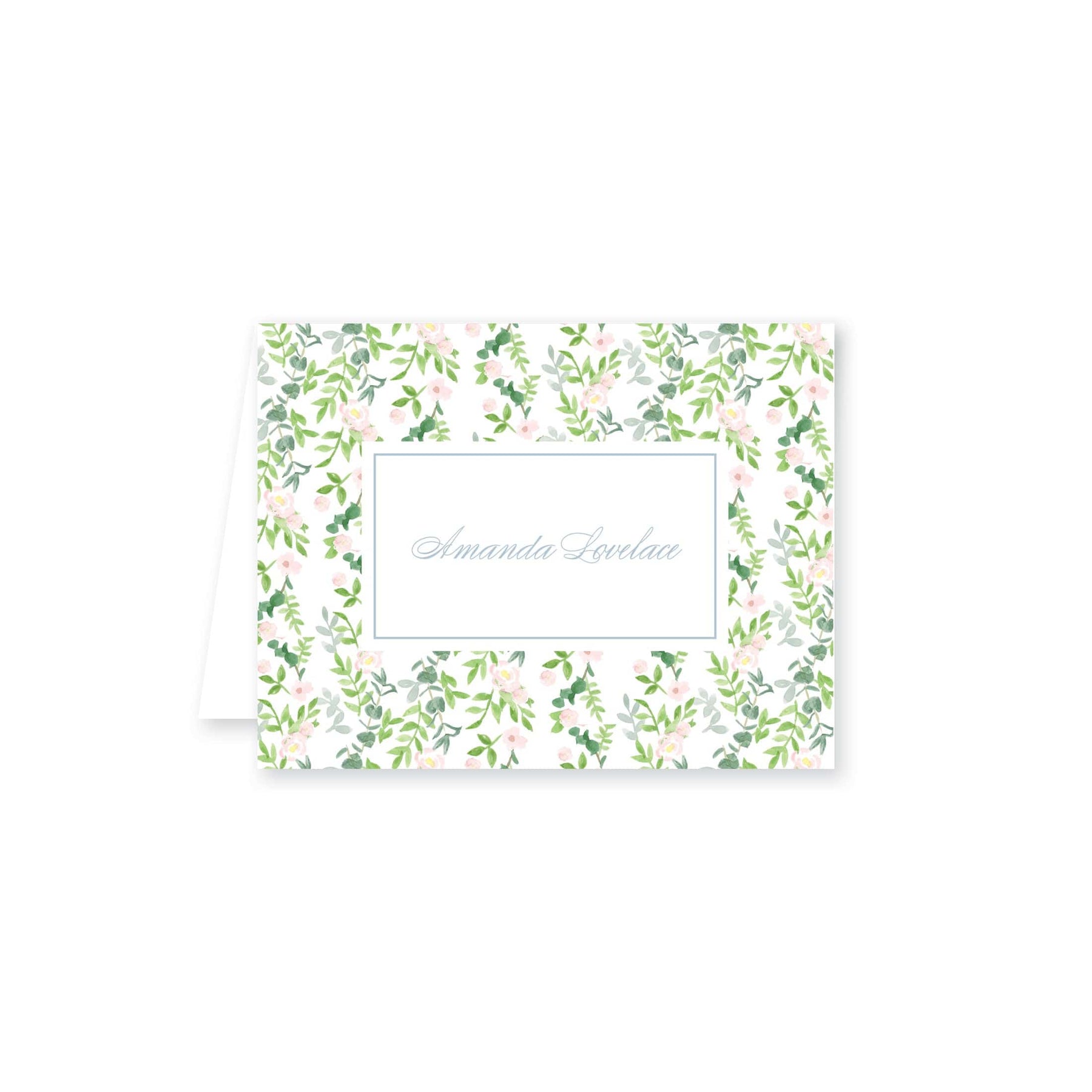 Our Floral Garden Folded Note Card is full of watercolor flowers. The spring pink with blue and green is bright and feminine. Perfect for girls, brides or Moms for thank yous!