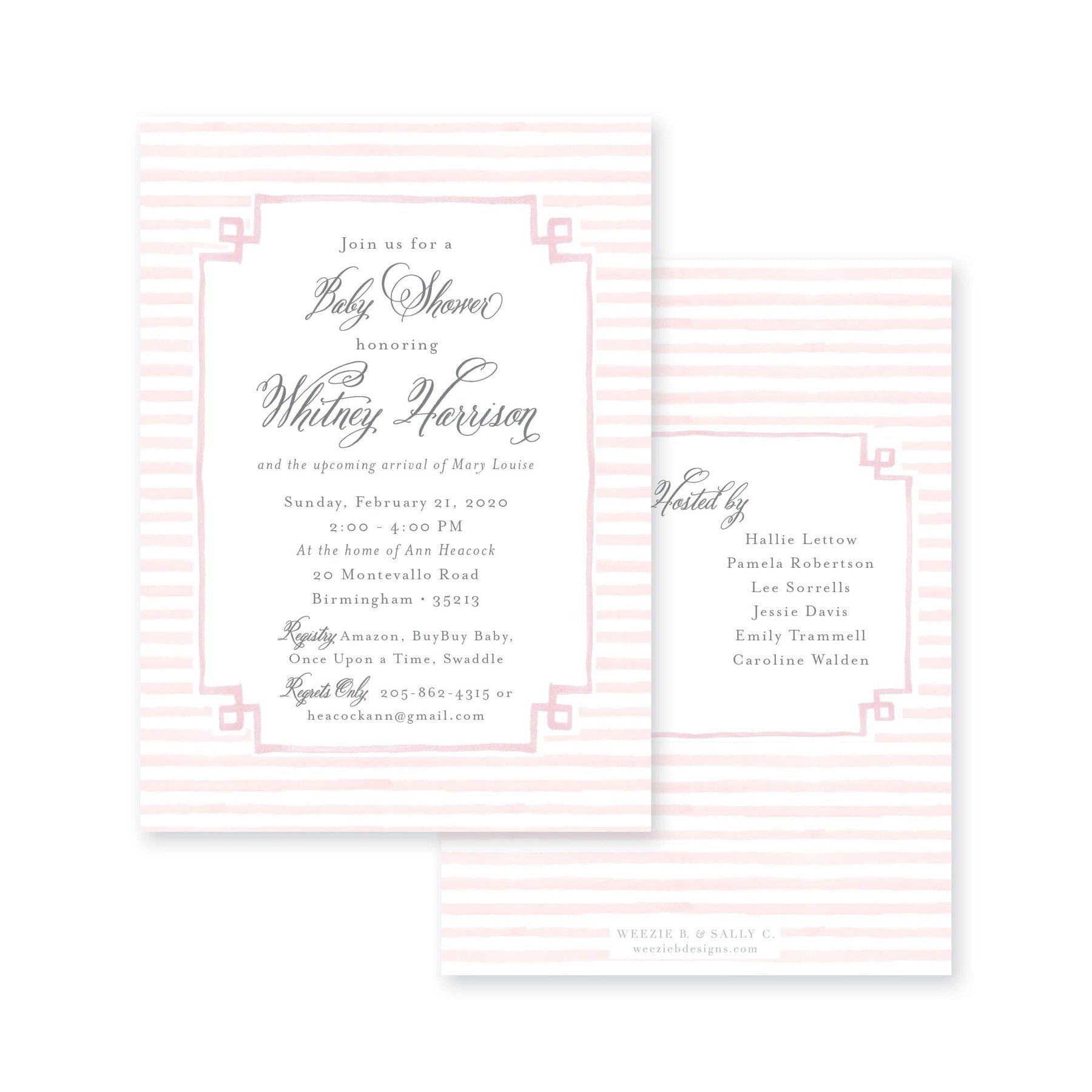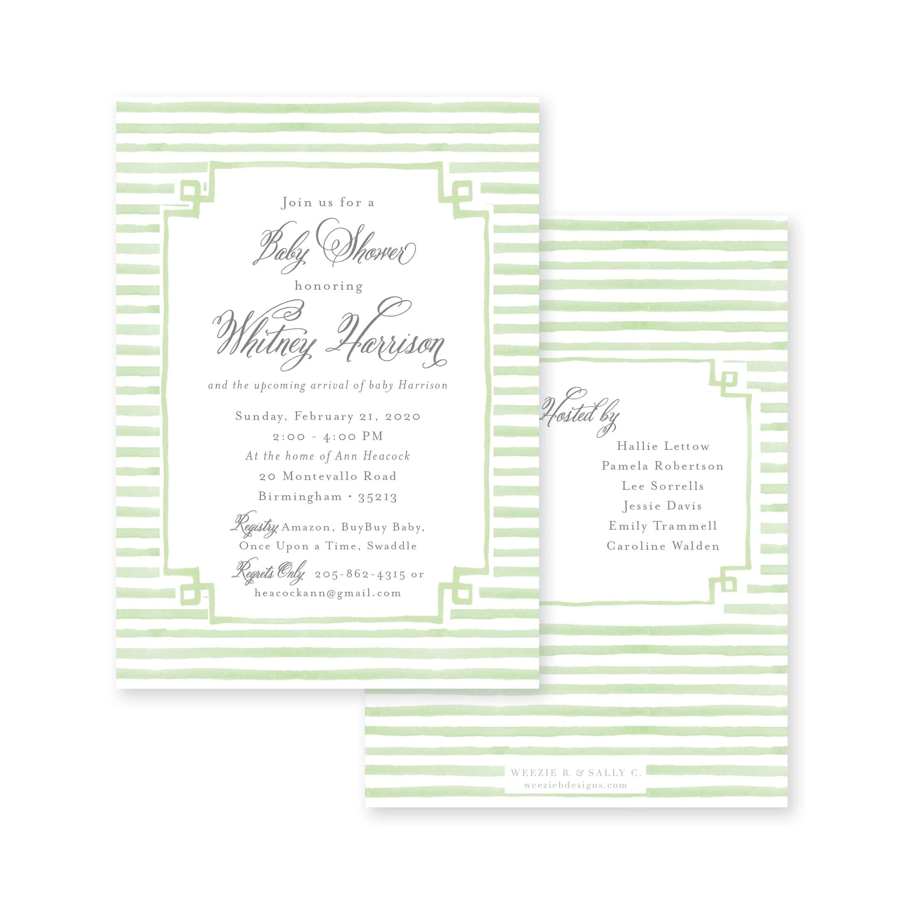 Our Sweet Stripes Baby Shower Invitation is pretty and elegant. Choose light pink, light blue or light green for this beautiful shower invitation.