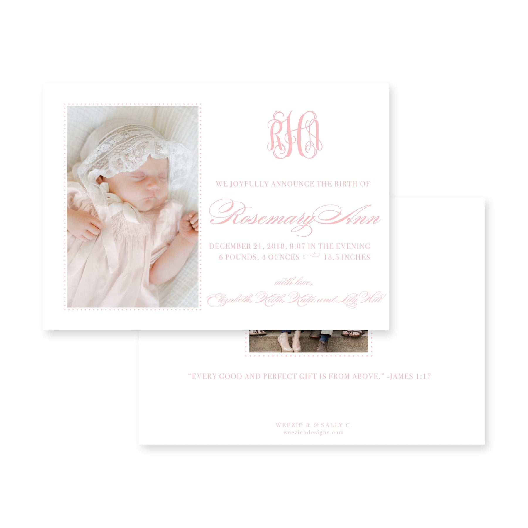 Our Classic Horizontal Birth Announcement is timeless. Send the news your new addition with a traditional and beautiful announcement.