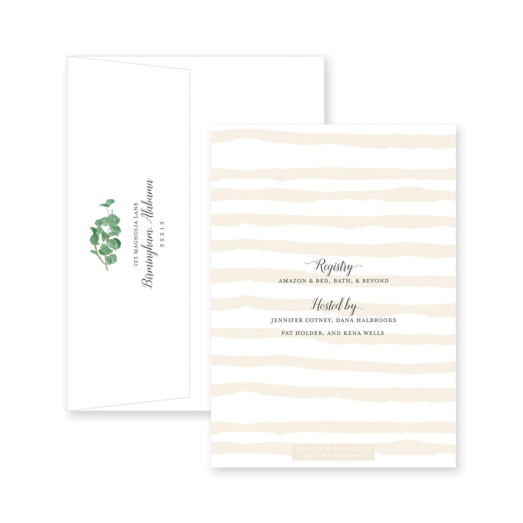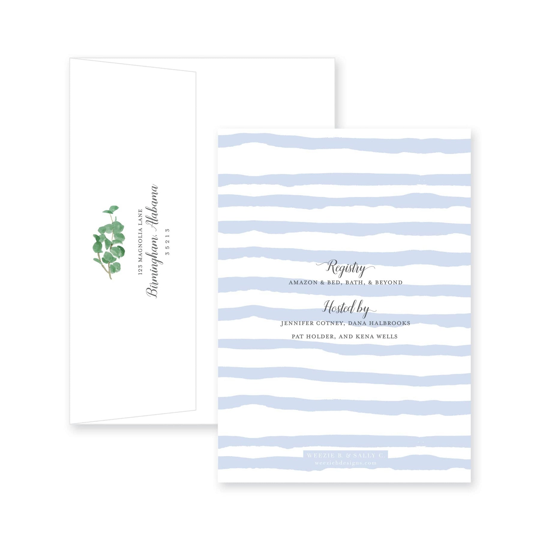 Our Eucalyptus On Stripes Bridal Shower Invitation is simple and elegant. In French Pink or Blue, you can choose which will best suit your shower.