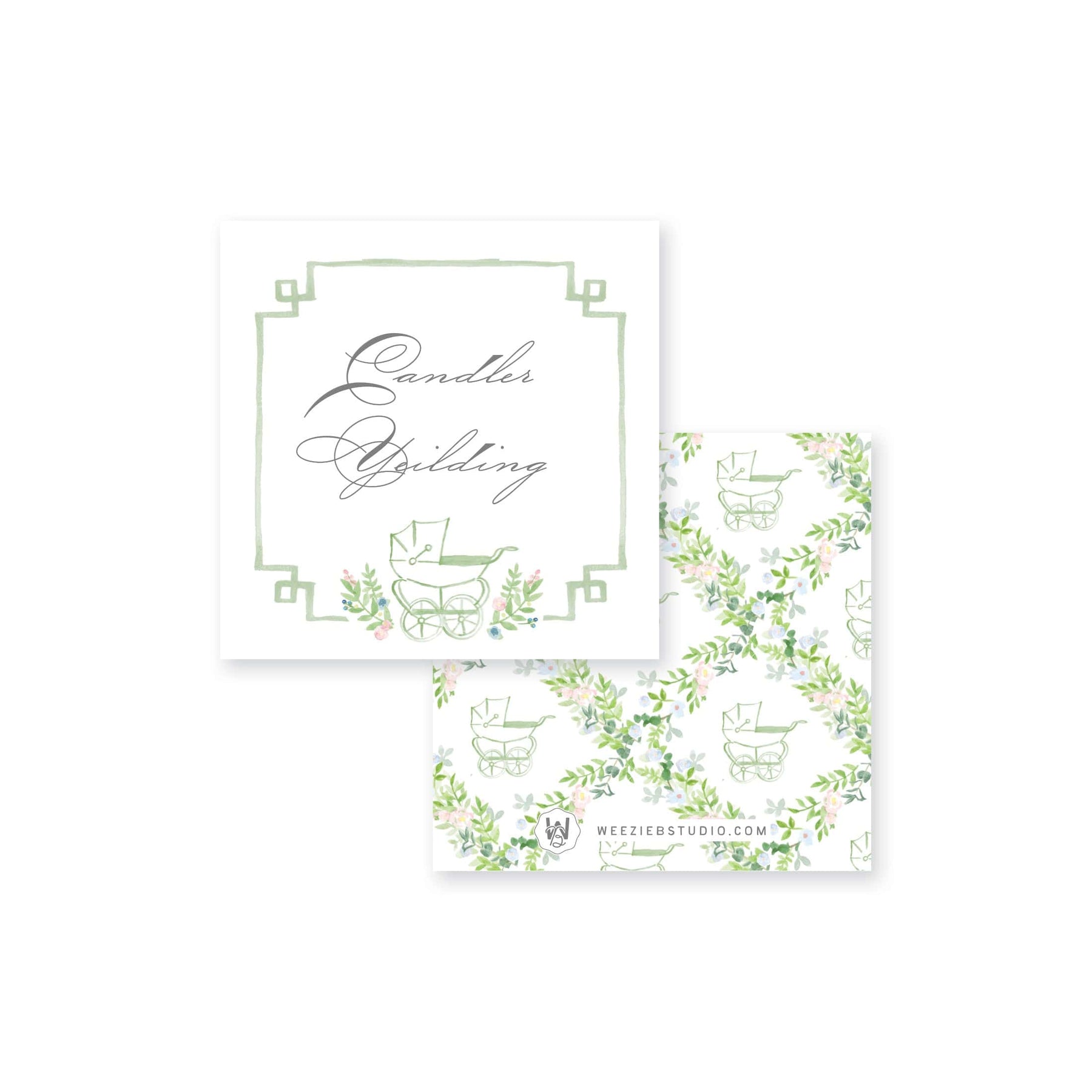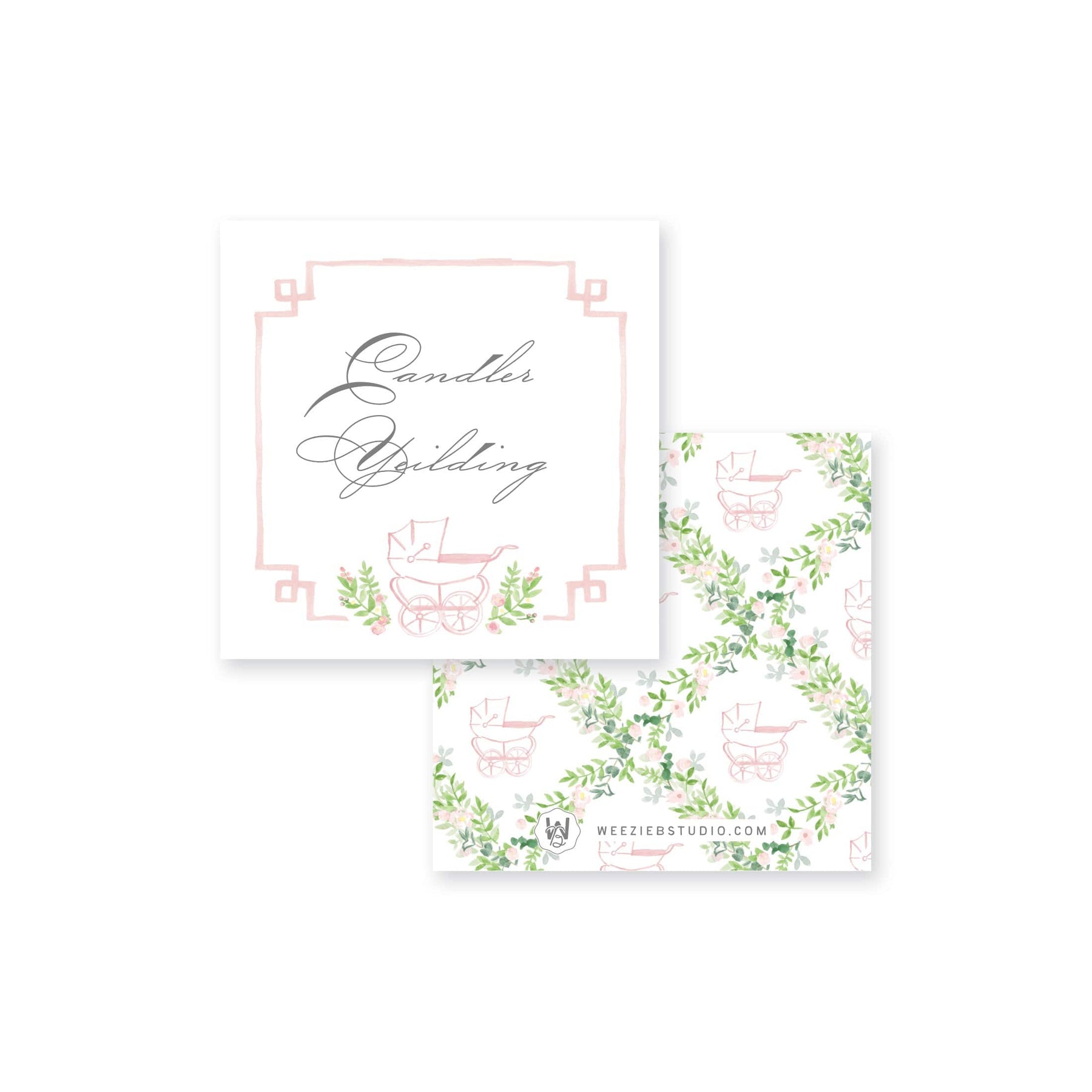 A gift looks extra sweet with this Prim Pram Floral Trellis Calling Card attached. Personalized for your sweetie - it's a perfect addition to your little ones paper suite!