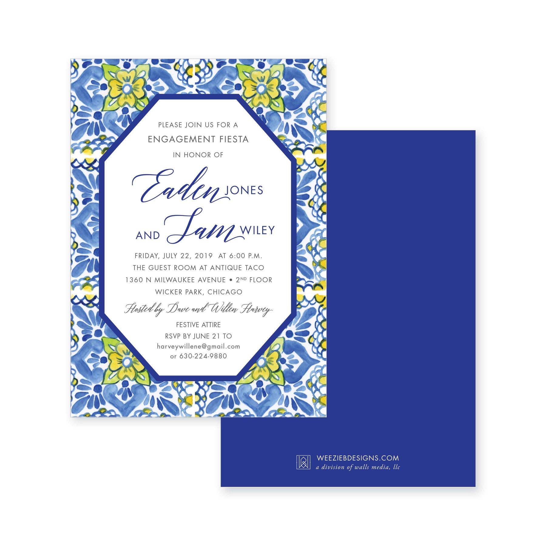 Weezie B. Designs | Fiesta Escamilla Azul Engagement Party Invitation