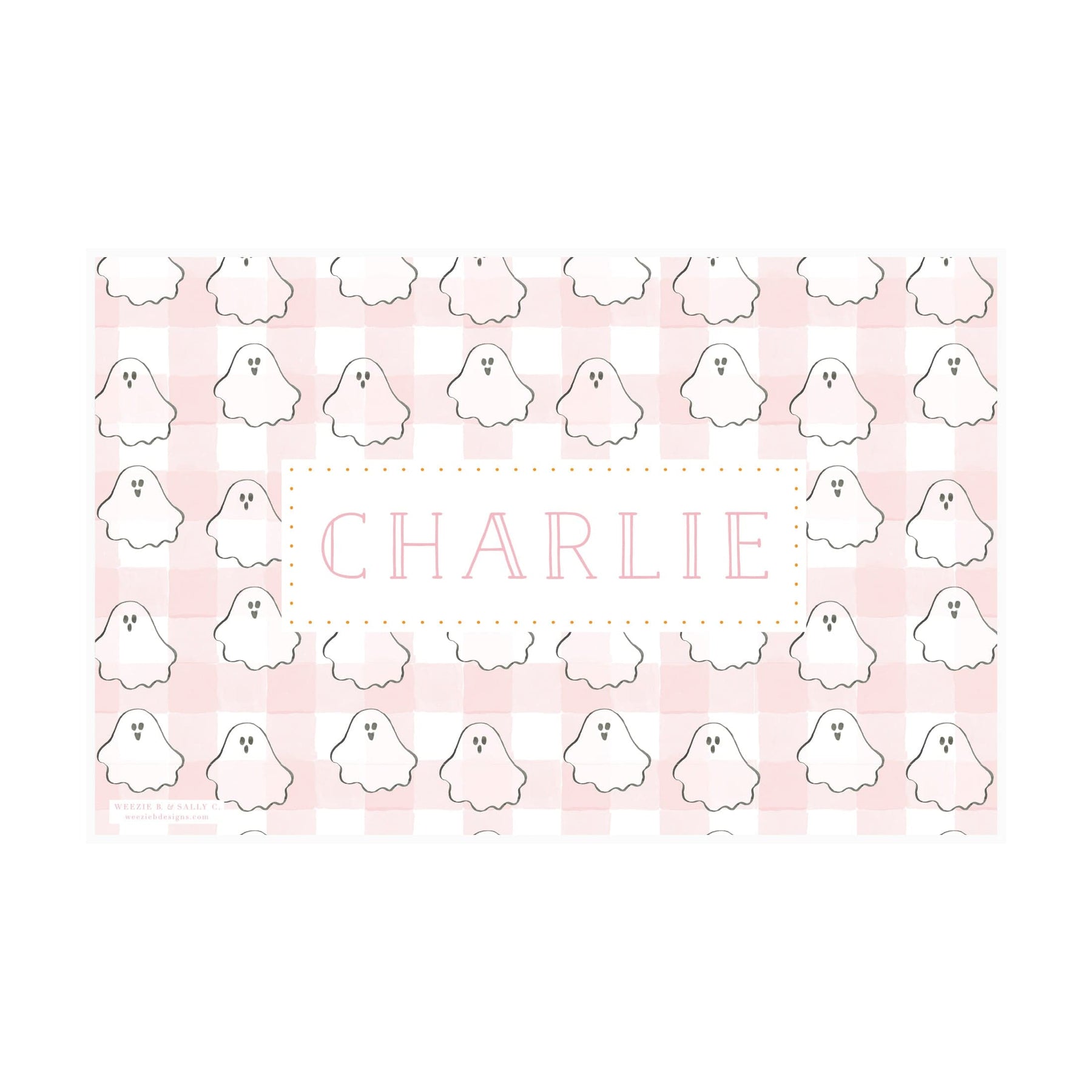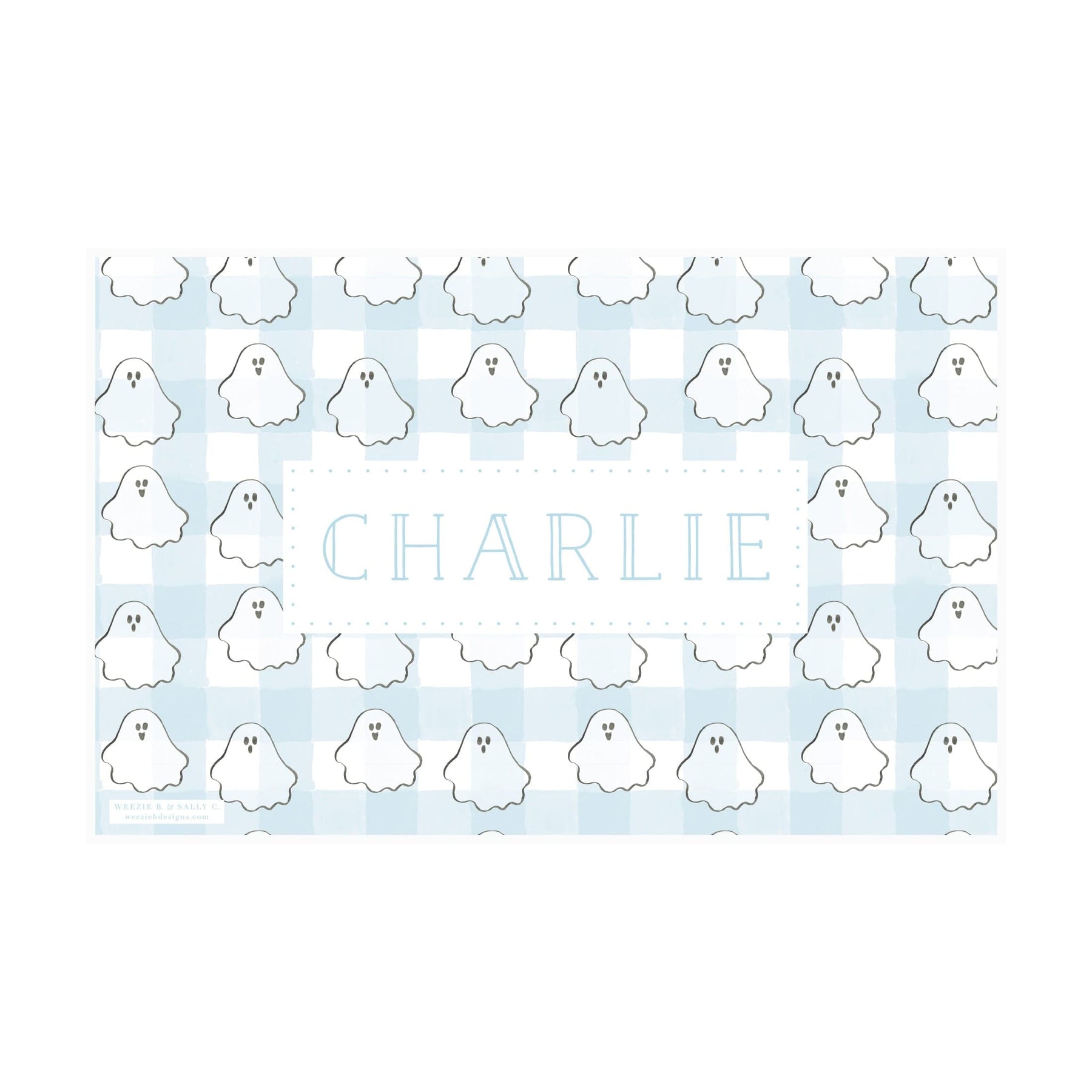 Our Spooky Ghost Halloween Laminated Place Mat makes a sweet and festive addition to your Halloween table. Your baby/child will love the ghost pattern - and you'll be happy to keep your table a little less messy. These Place Mats are laminated so you can wipe and reuse. These personalized place mats make a great and reusable gift!
