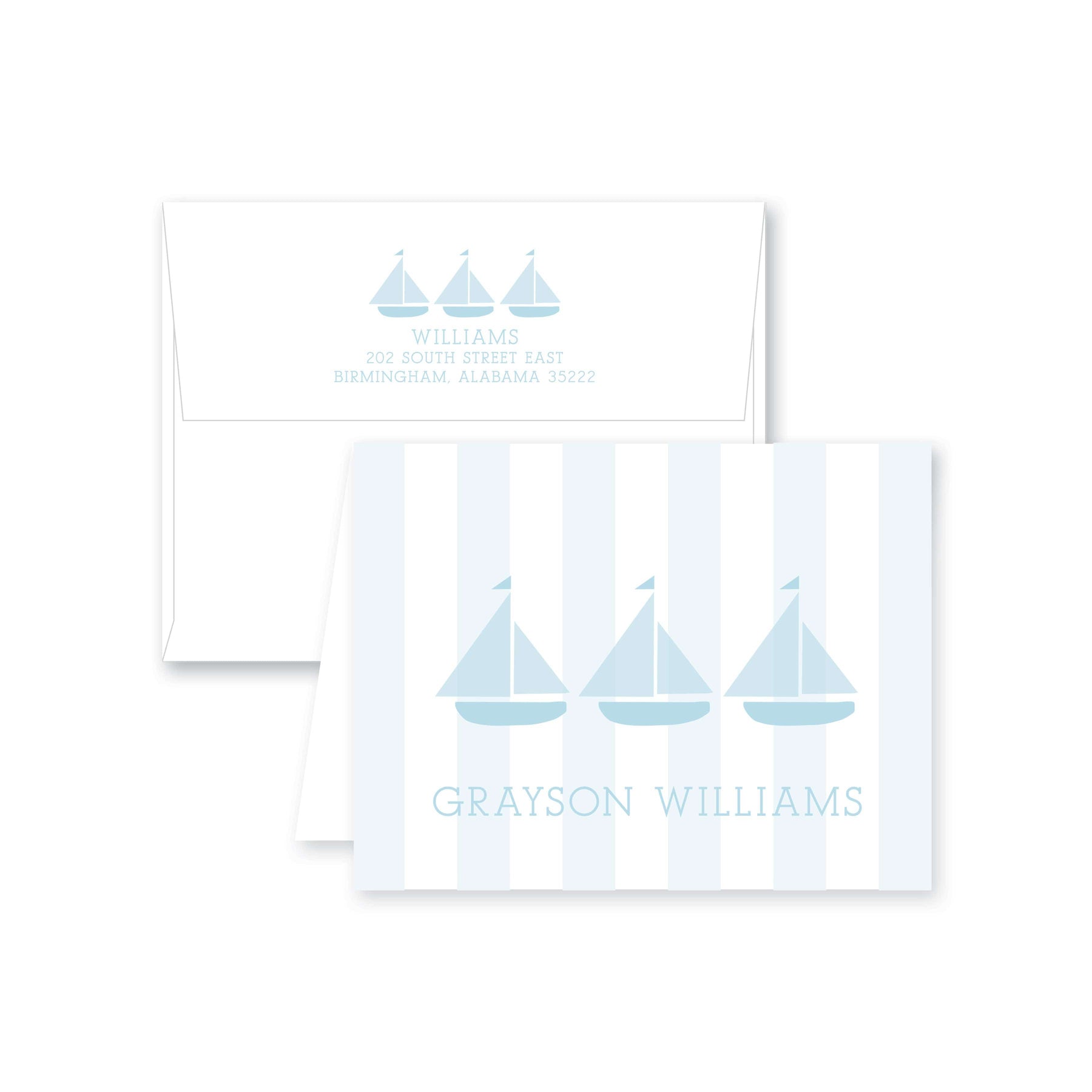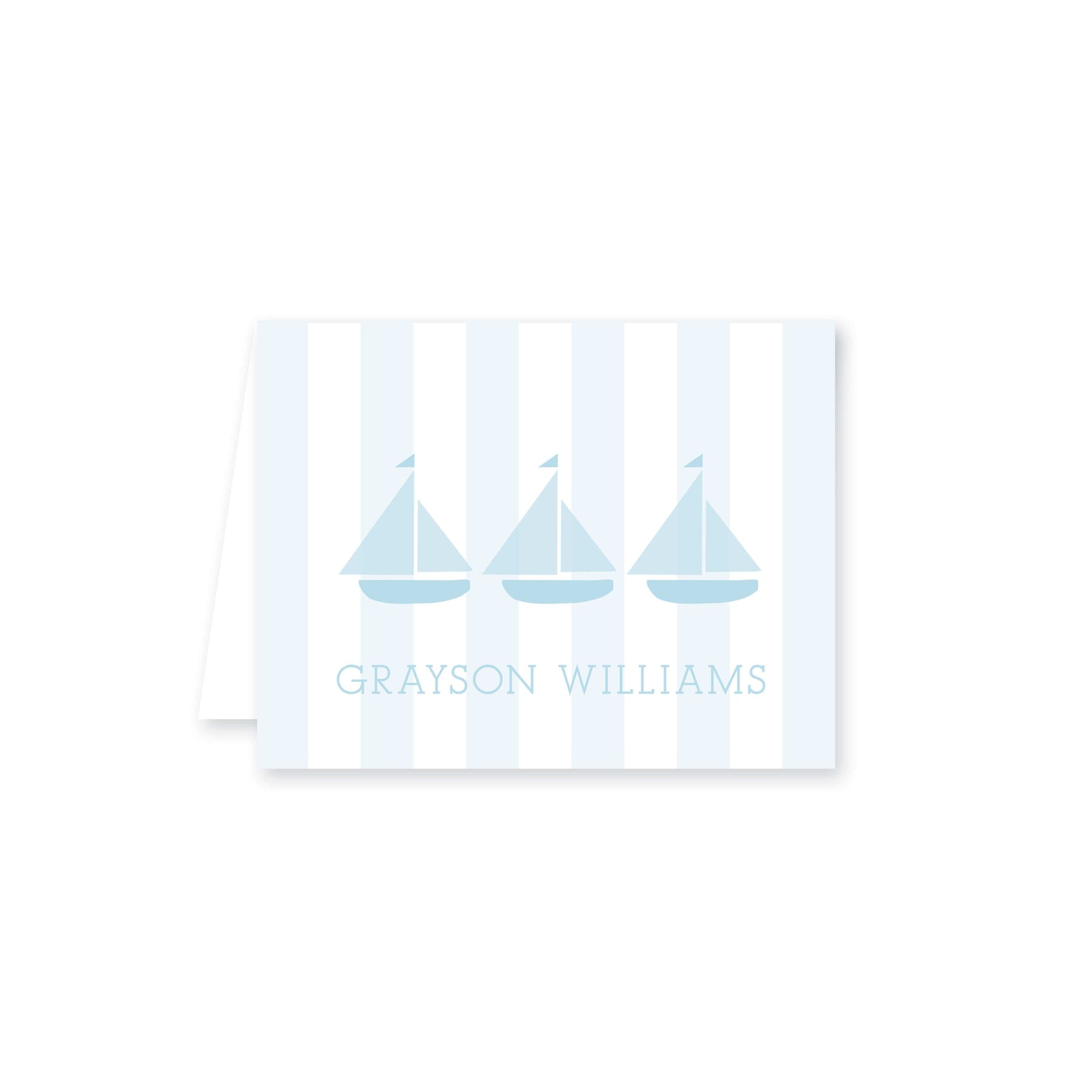 Trio of Sailboats Folded Note Card with it's baby blues is sweet and nautical boats and stripes- a cute addition to your little sailors paper suite.