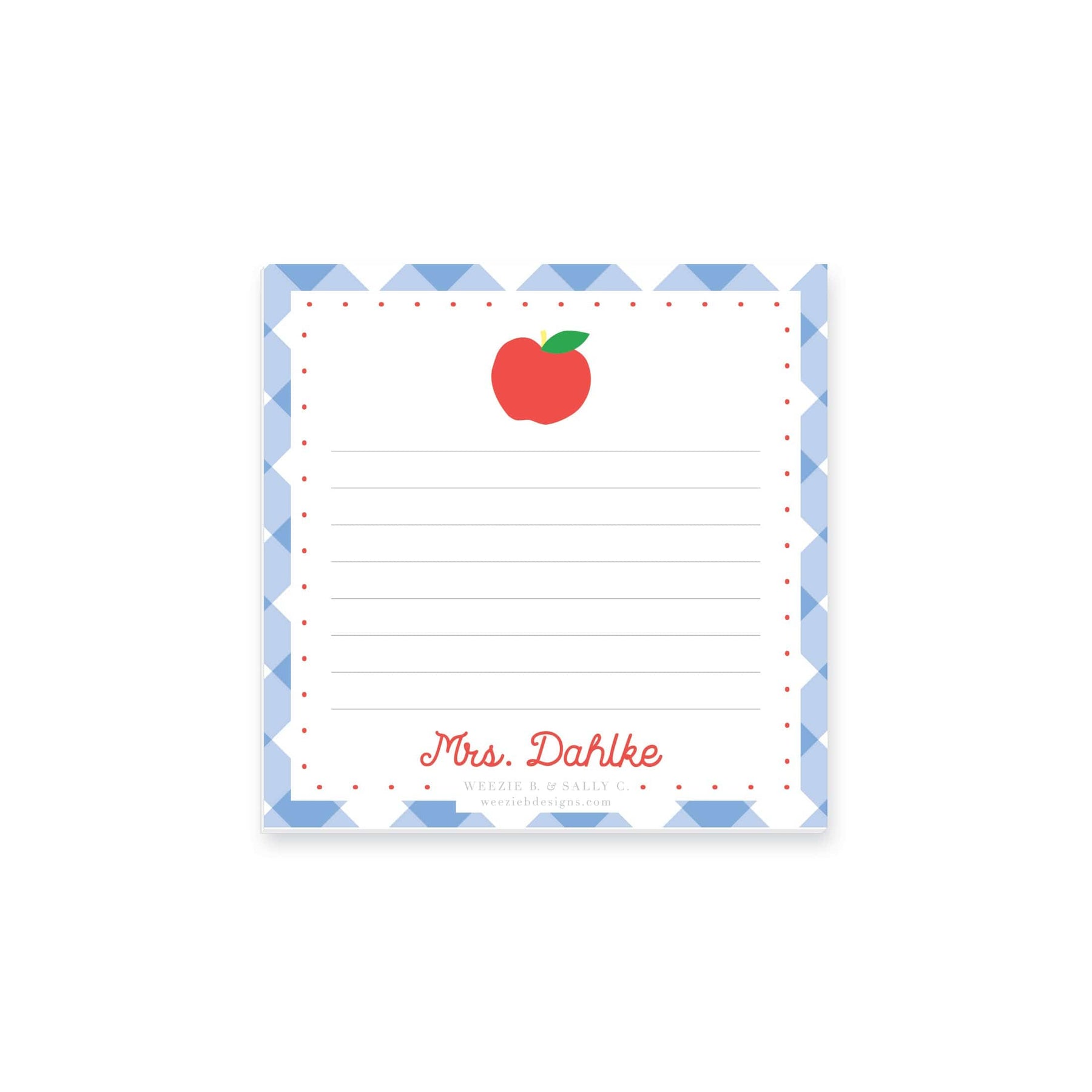 Teachers always need paper! These lined notepads with a fun gingham pattern border and apple are a great gift for teacher!