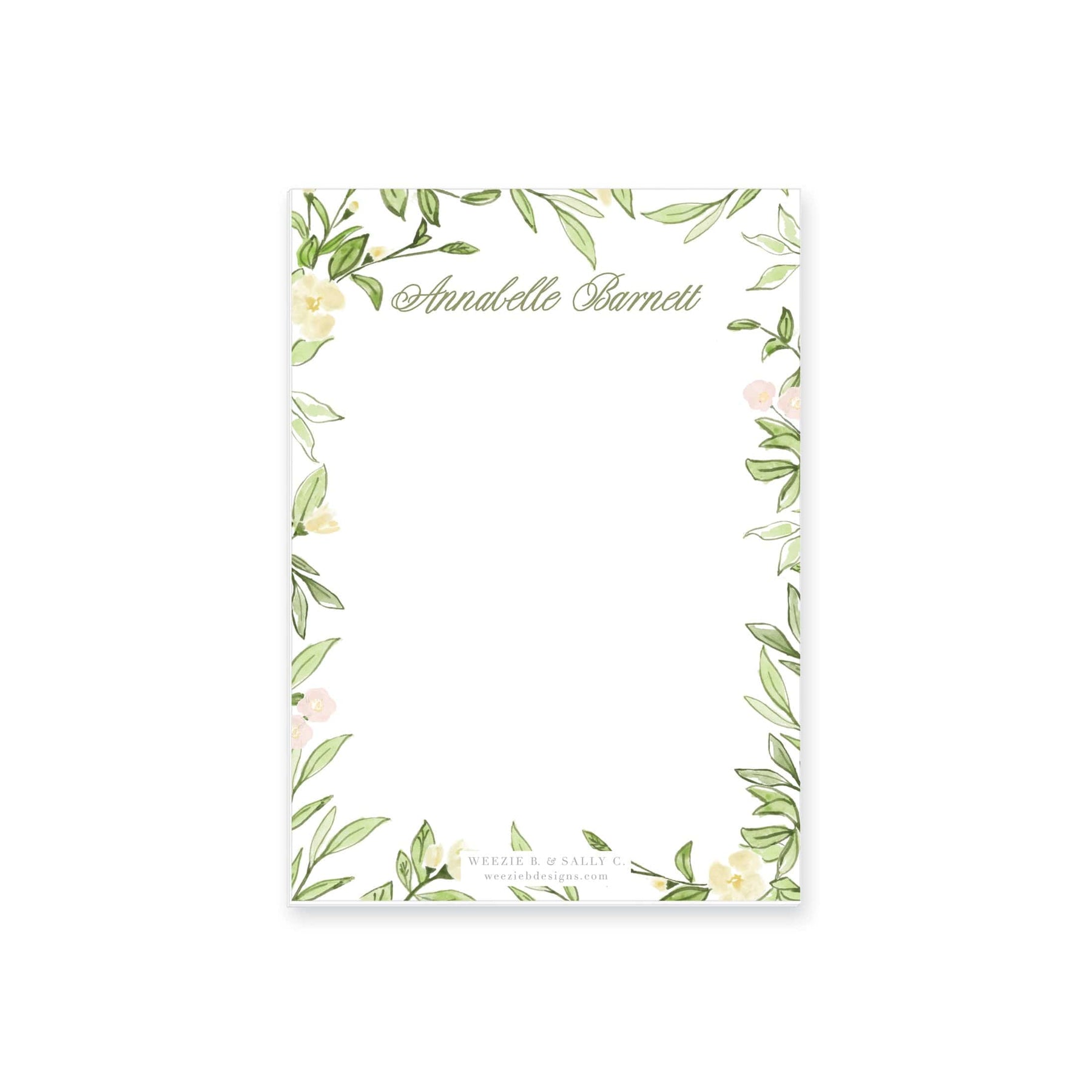 Watercolor Spring Garden Notepad is classic and pretty. This personalized notepad will bring a little beauty to your desk or counter!