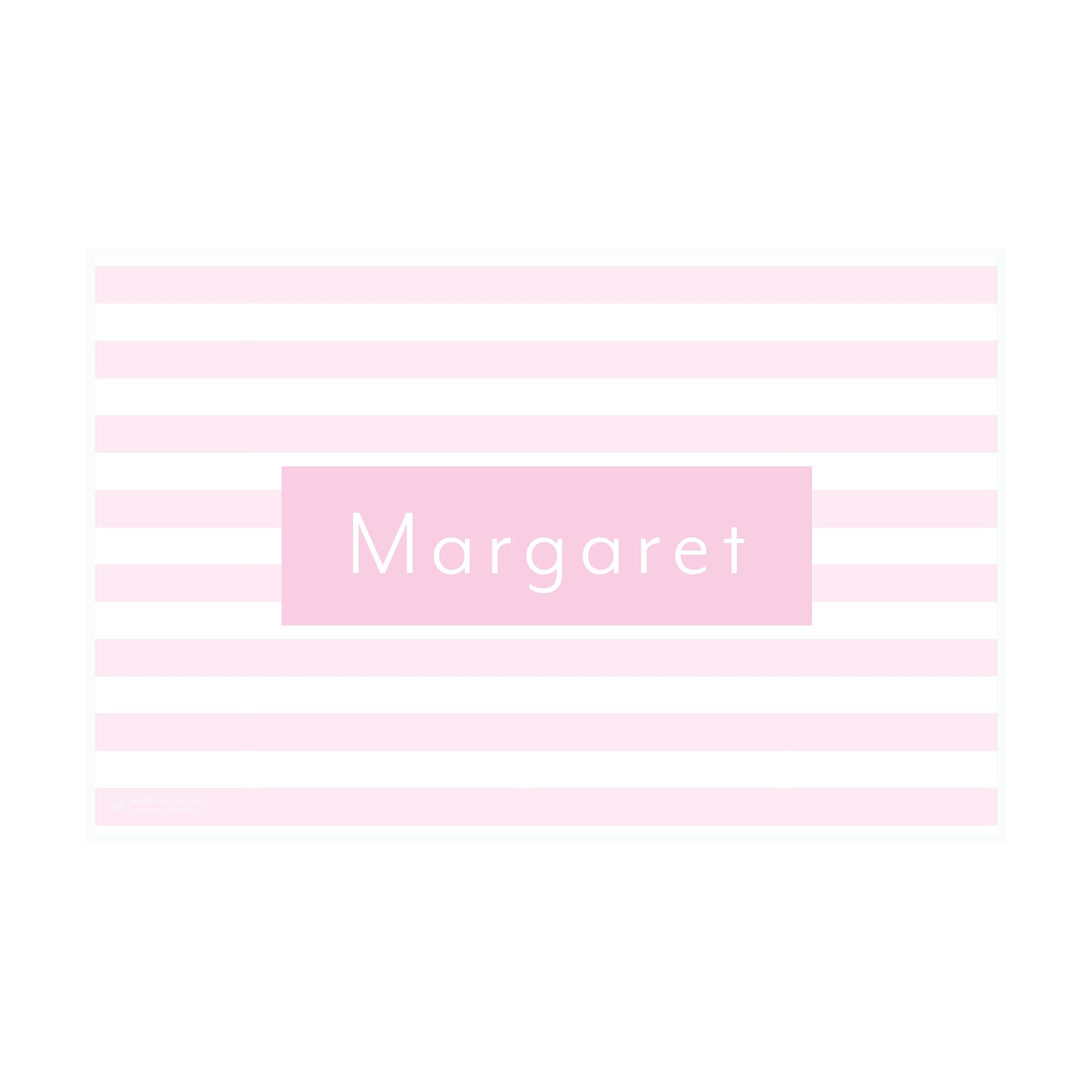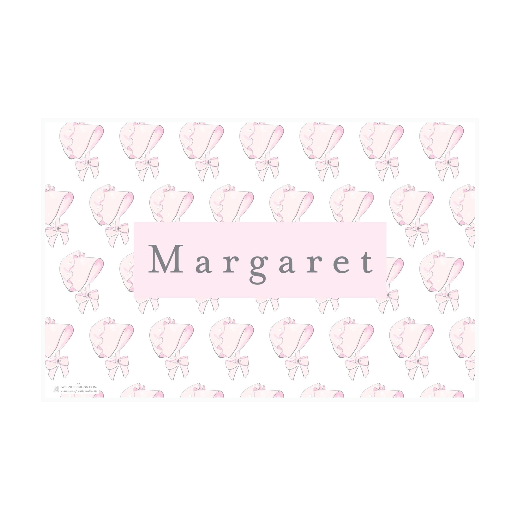 Our Baby Bonnet Laminated Place Mat makes a sweet addition to your table. Your little bonnet loving baby will love stripes and bonnet pattern- and you'll be happy to keep your table a little less messy. The other side features simple stripes with your little ones name in a box in the middle. These Place Mats are laminated so you can wipe and reuse. These personalized place mats make a great and usable gift for any occasion!