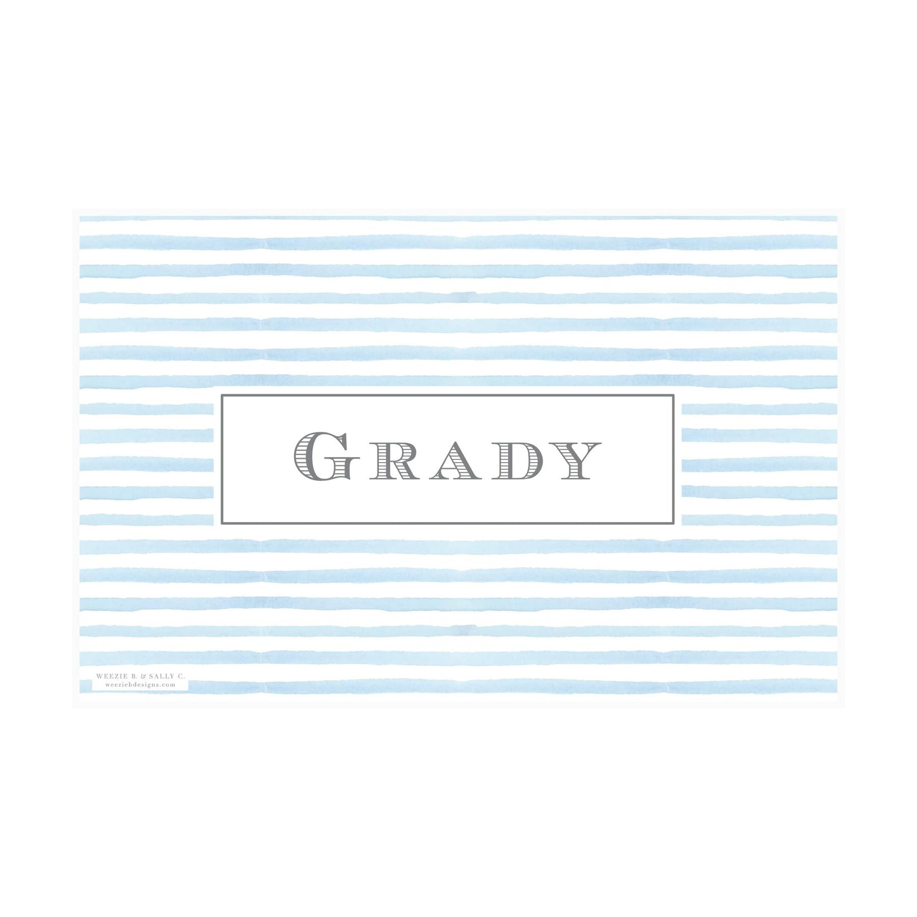 Our Football Players Watercolor - Stripes Laminated Place Mat makes a sweet addition to your table. Your little football fan will love their fun placemat- and you'll be happy to keep your table a little less messy. One side has our Watercolor football players with their name in the middle. The other side features a stripe pattern with your little ones name in a box in the middle. These Place Mats are laminated so you can wipe and reuse. These personalized place mats make a great and usable gift for any occasion!