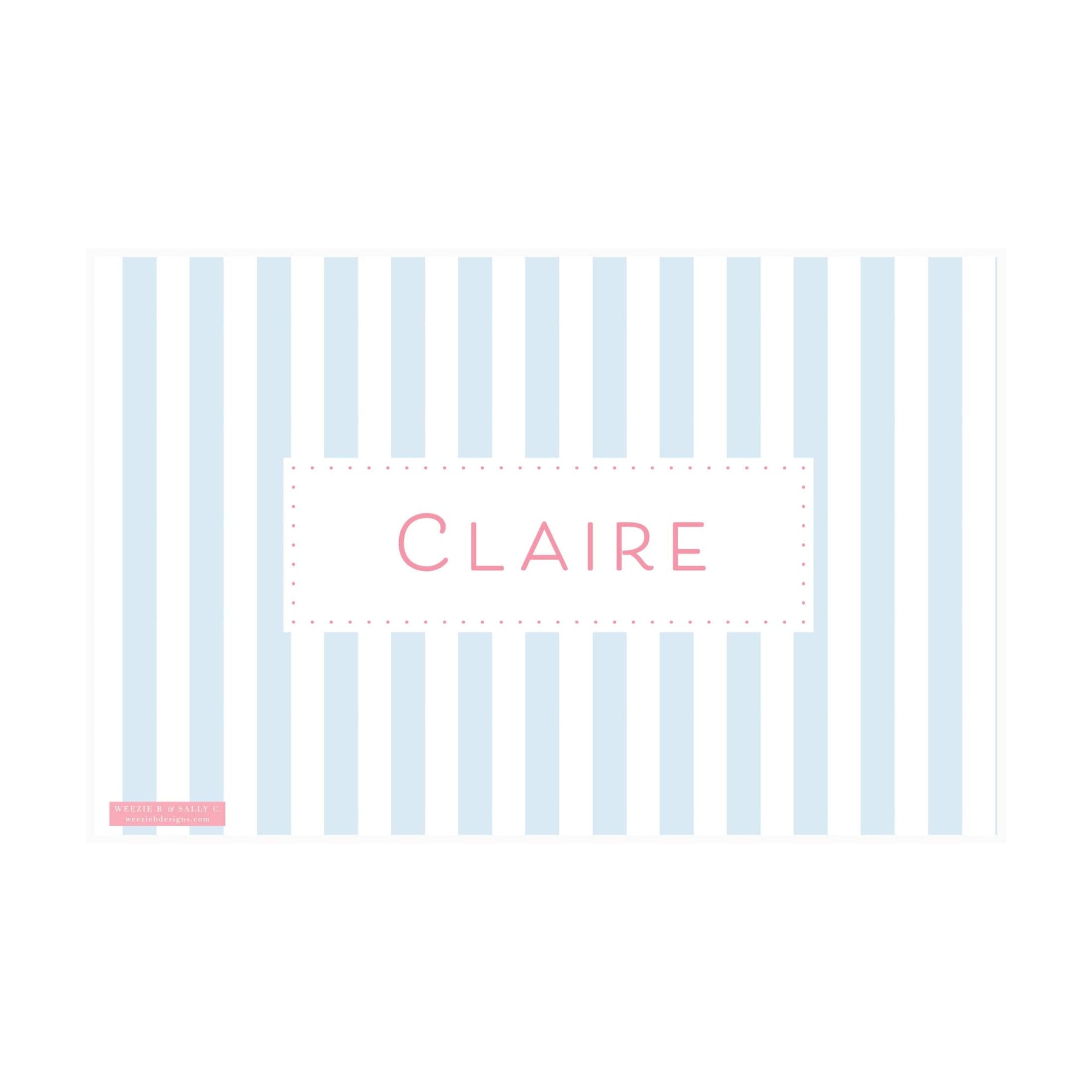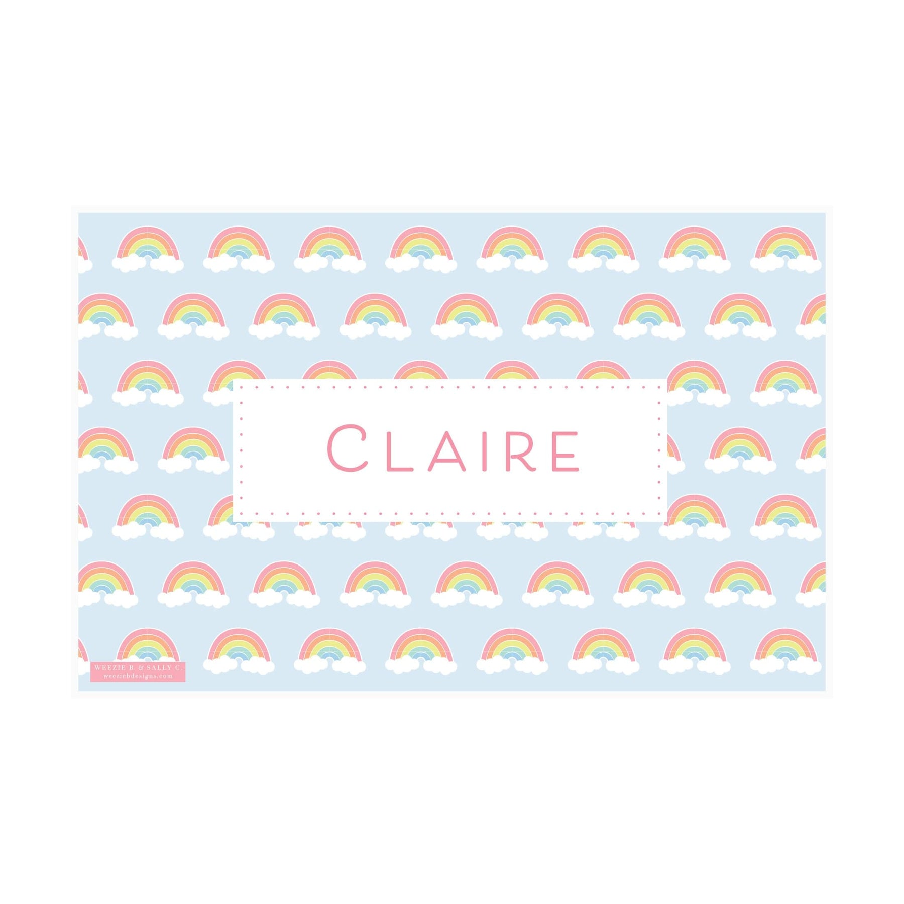 Laminated Placemat makes a fun addition to your table. Your little girl will love the rainbow pattern- and you'll be happy to keep your table a little less messy. The other side features simple stripes with your little ones name in a box in the middle. These Placemats are laminated so you can wipe and reuse. These personalized placemats make a great and usable gift for any occasion!