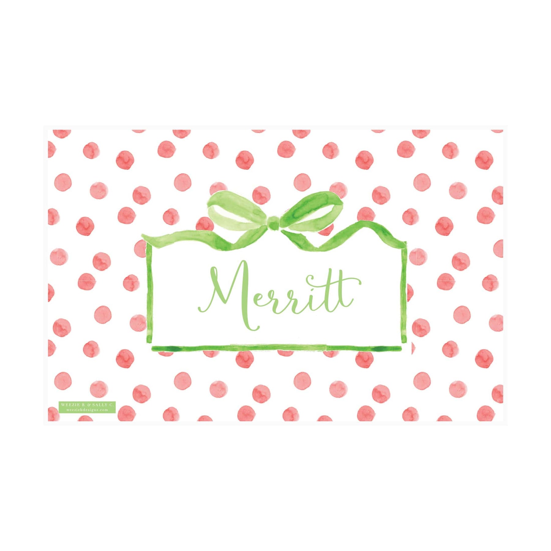 Our Santa's Cookies - Stripes Laminated Place Mat makes a sweet addition to your table. Your little one will be happy to have this fun and festive placemat to view- and you'll be happy to keep your table a little less messy. The other side features simple stripes with your little ones name in a box in the middle. These Place Mats are laminated so you can wipe and reuse. These personalized place mats make a great and usable gift for any occasion!