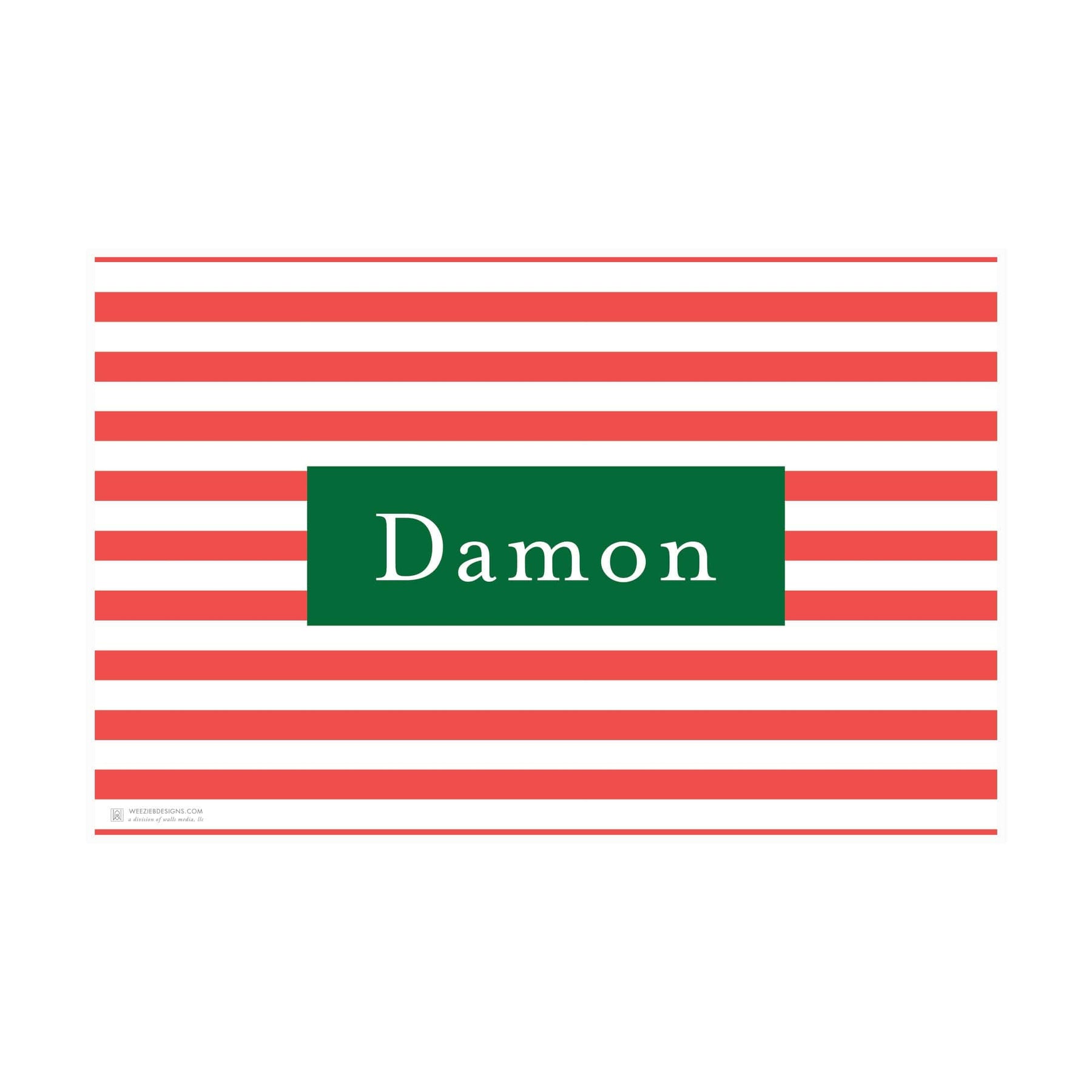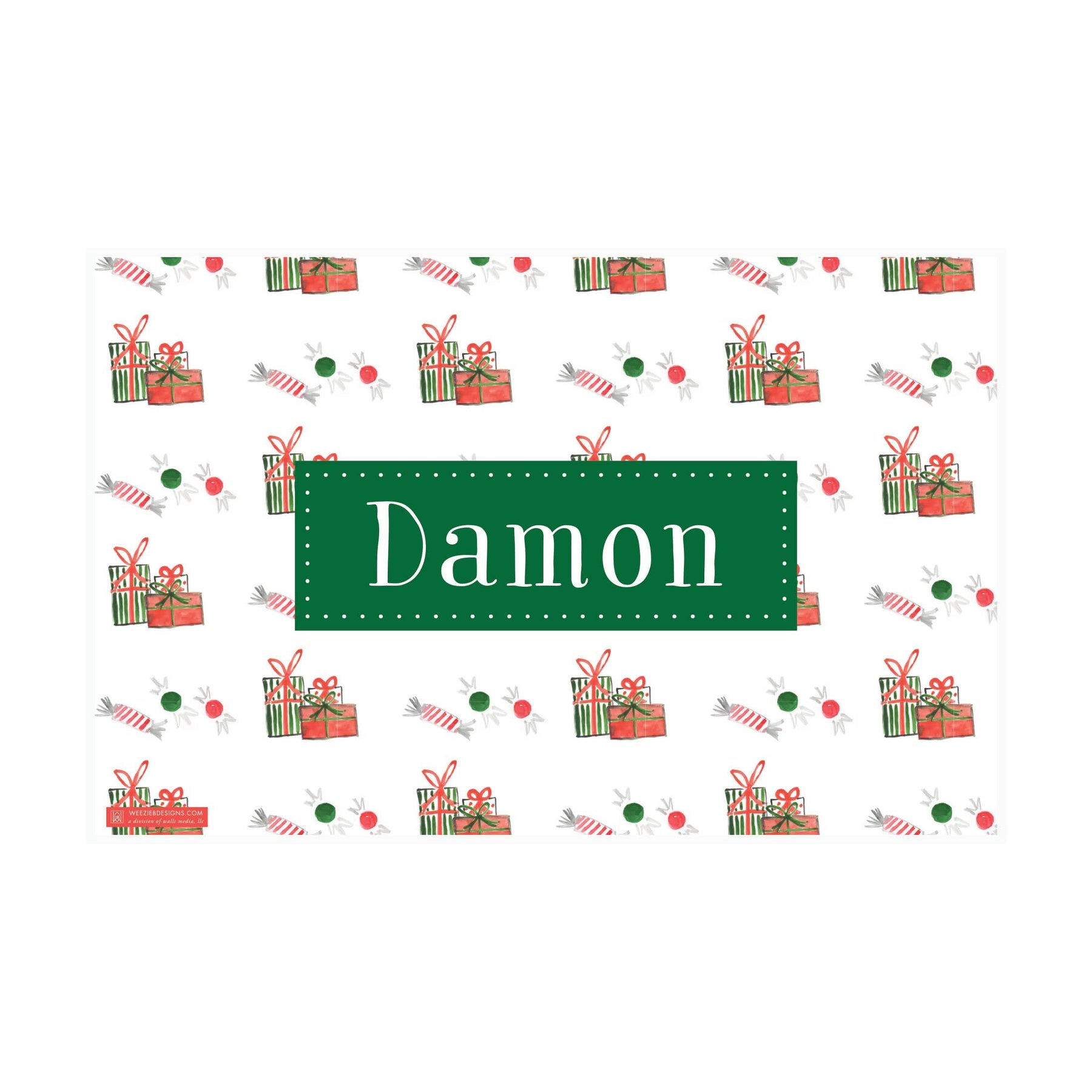 Our Watercolor Christmas Gifts - Stripes Laminated Place Mat makes a sweet addition to your table. Your little one will be happy to have this fun and festive placemat to view- and you'll be happy to keep your table a little less messy. The other side features simple stripes with your little ones name in a box in the middle. These Place Mats are laminated so you can wipe and reuse. These personalized place mats make a great and usable gift for any occasion!