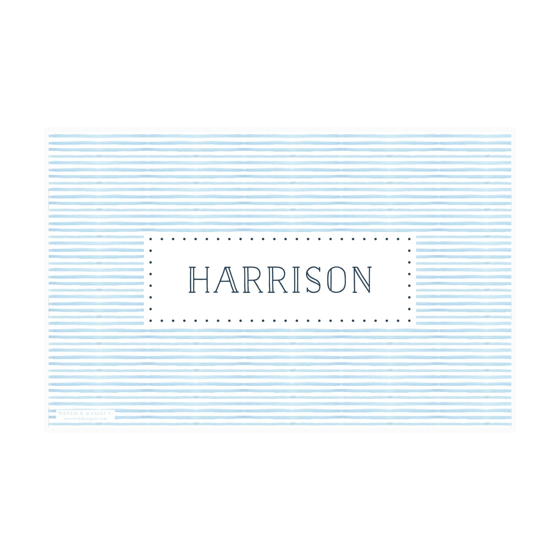 Our Alligator Watercolor Laminated Placemat makes a sweet addition to your table. Your little one will love the whale pattern and stripes on the back- and you'll be happy to keep your table a little less messy. The other side features watercolor gingham with your little ones name in a box in the middle. These Placemats are laminated so you can wipe and reuse. These personalized placemats make a great and usable gift for any occasion!