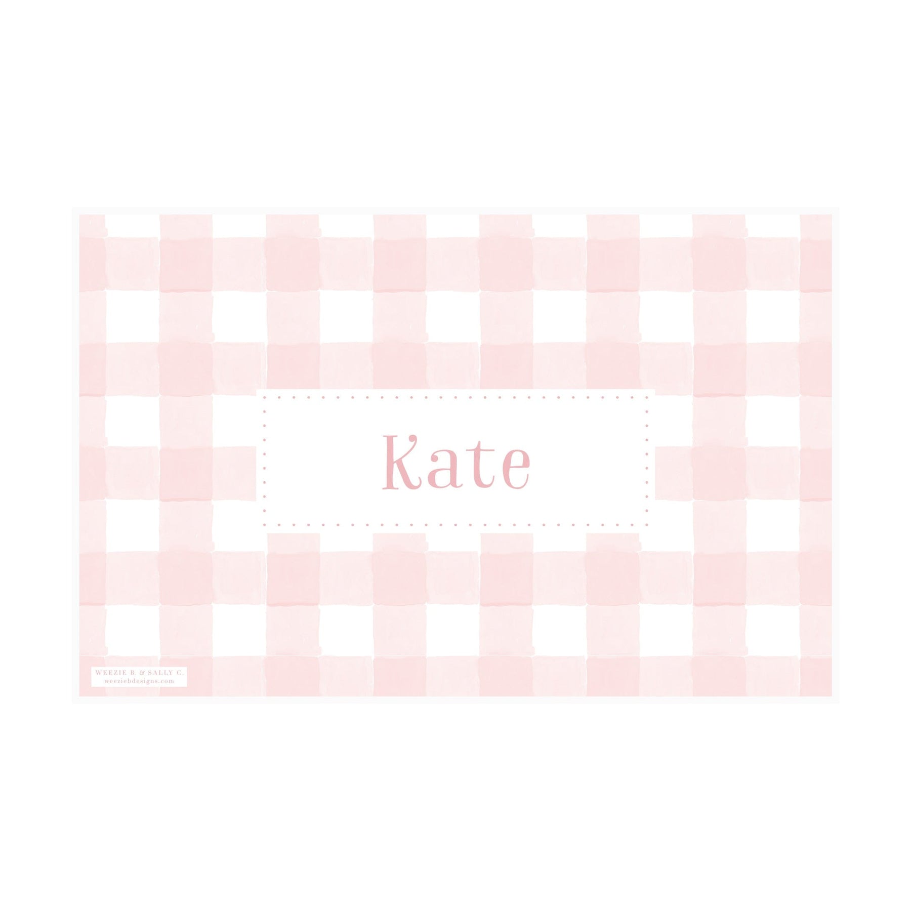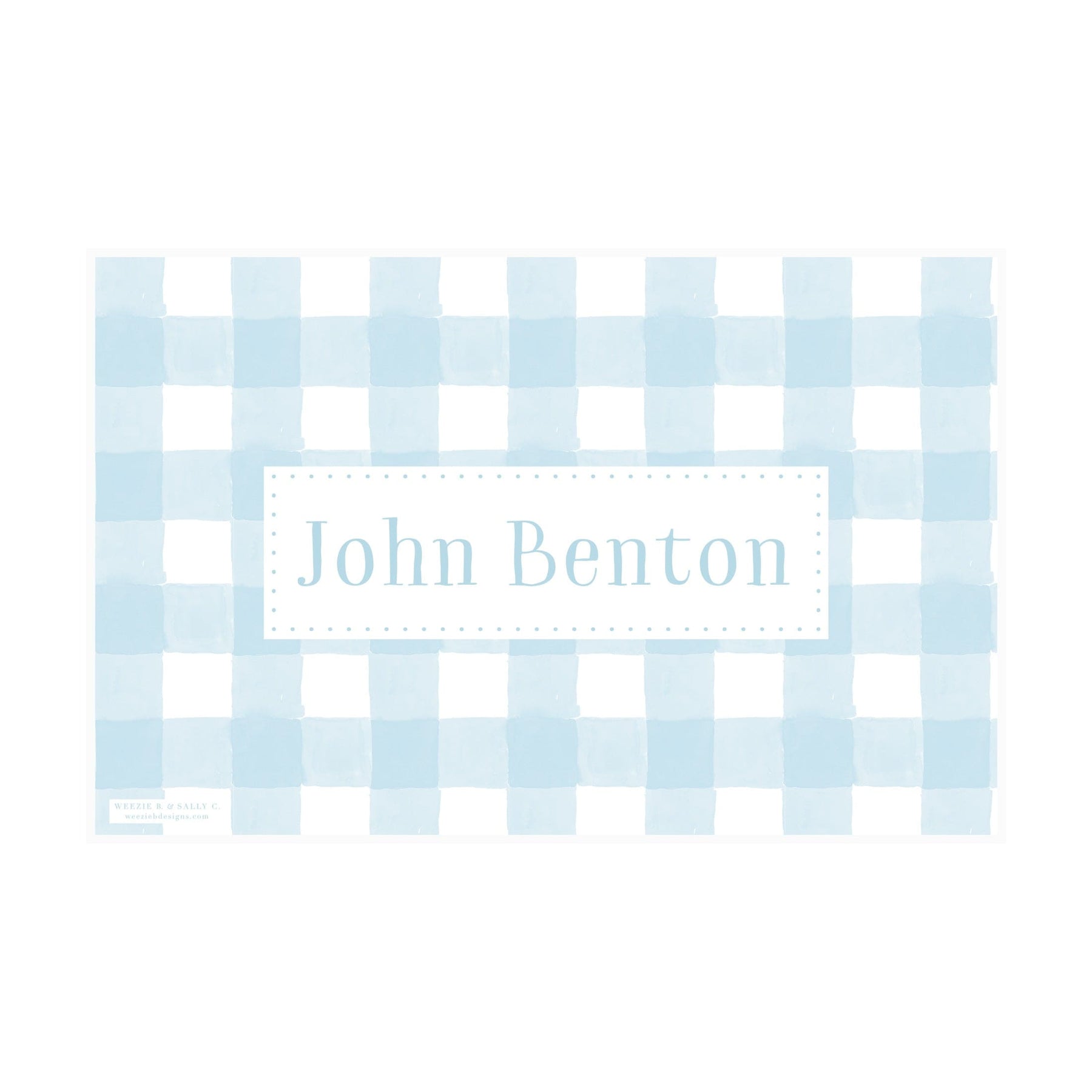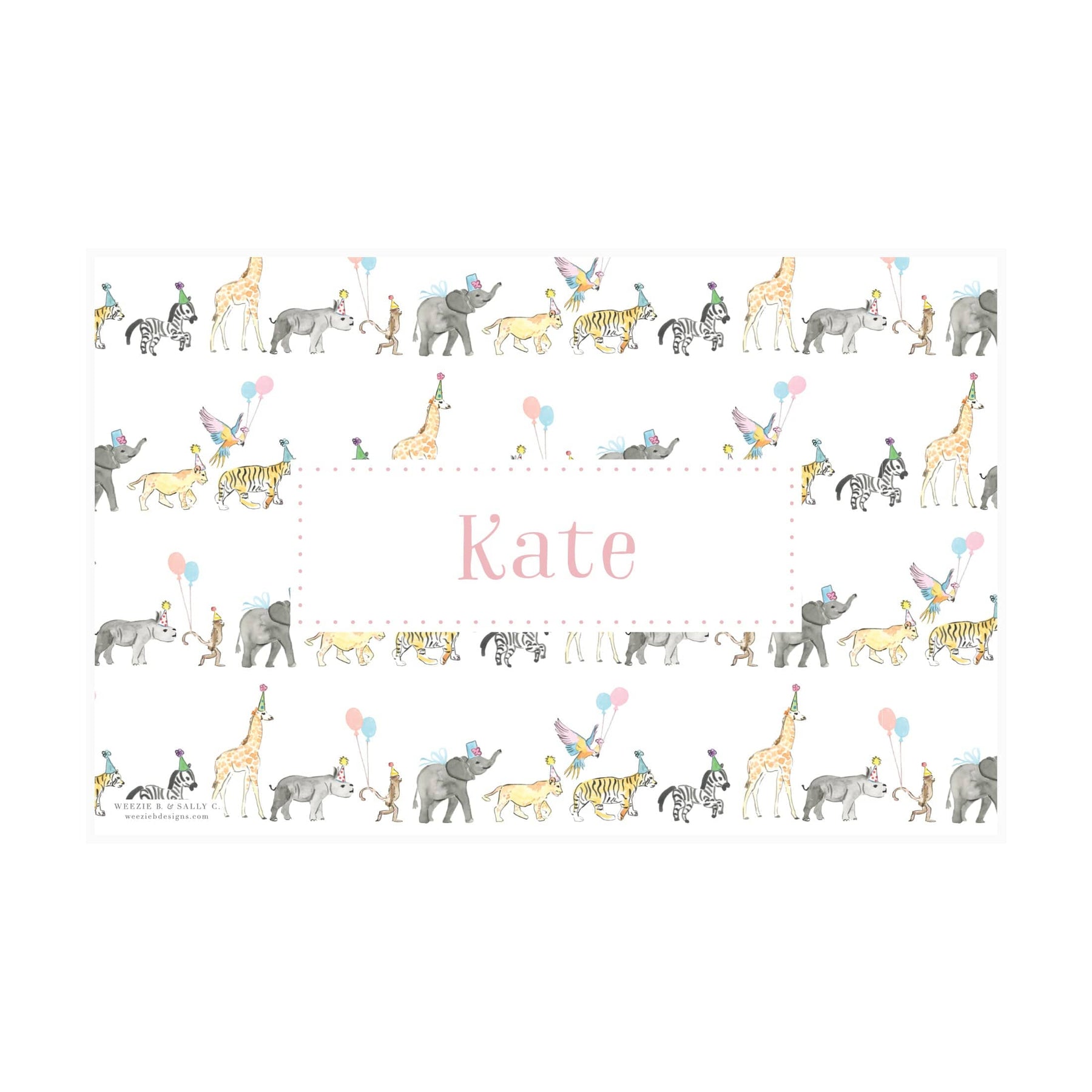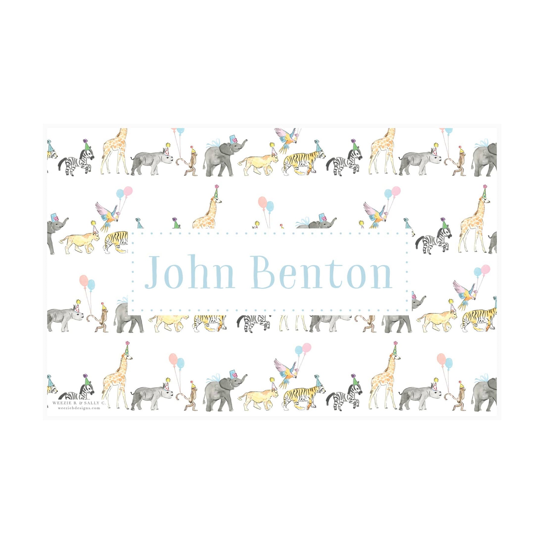 Our Wild About Zoo - Gingham Laminated Place Mat makes a sweet addition to your table. Your little ones will love fun animals on parade with balloons and party hats- and you'll be happy to keep your table a little less messy. These Place Mats are laminated so you can wipe and reuse. These personalized place mats make a great and usable gift for any occasion!