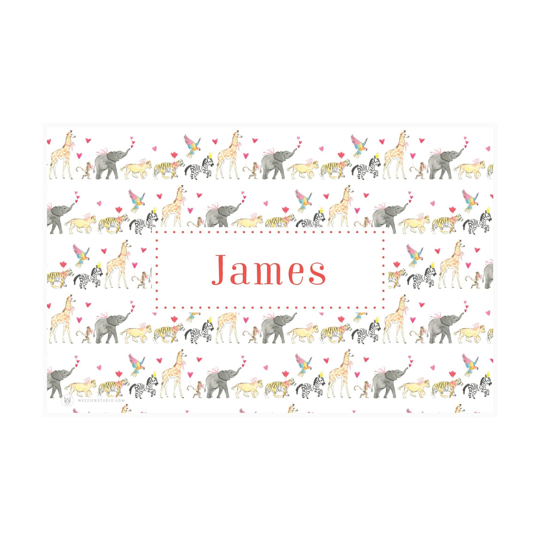 Our Wild About Zoo Valentine Gingham Laminated Place Mat makes a sweet addition to your table. Your little one will be happy to have this fun and festive placemat to view- and you'll be happy to keep your table a little less messy. The other side features watercolor gingham with your little ones name in a box in the middle. These Place Mats are laminated so you can wipe and reuse. These personalized place mats make a great and usable gift for any occasion!
