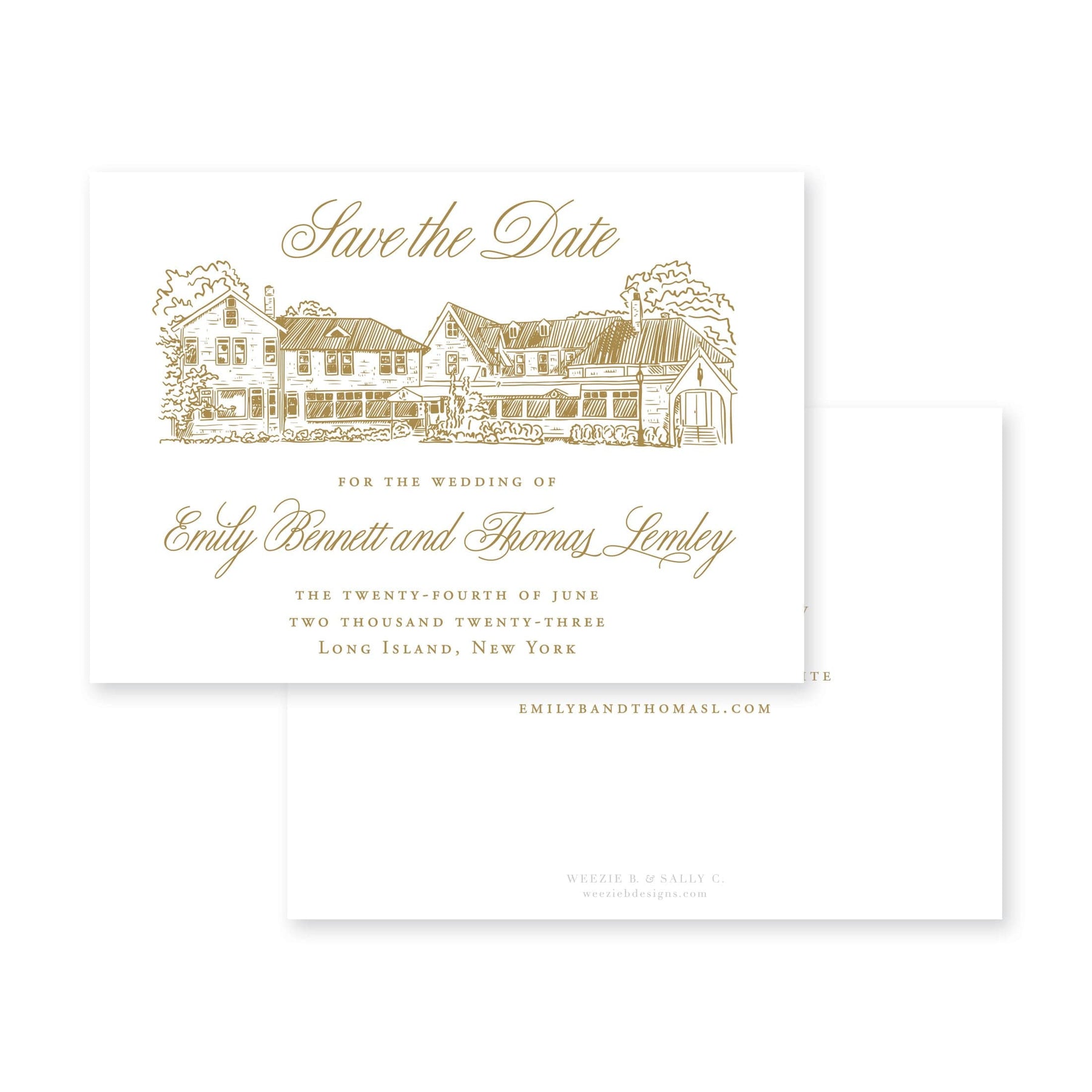 Save the Date in style with our Sketched Venue or Home Save-the-Date. Weezie B. or Sally C. will sketch your special place for you from a photo you upload.
