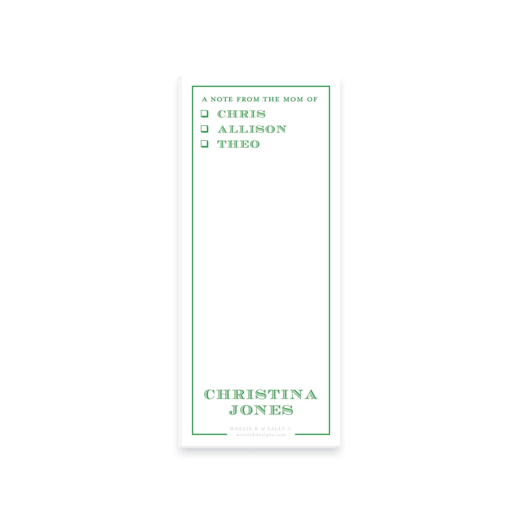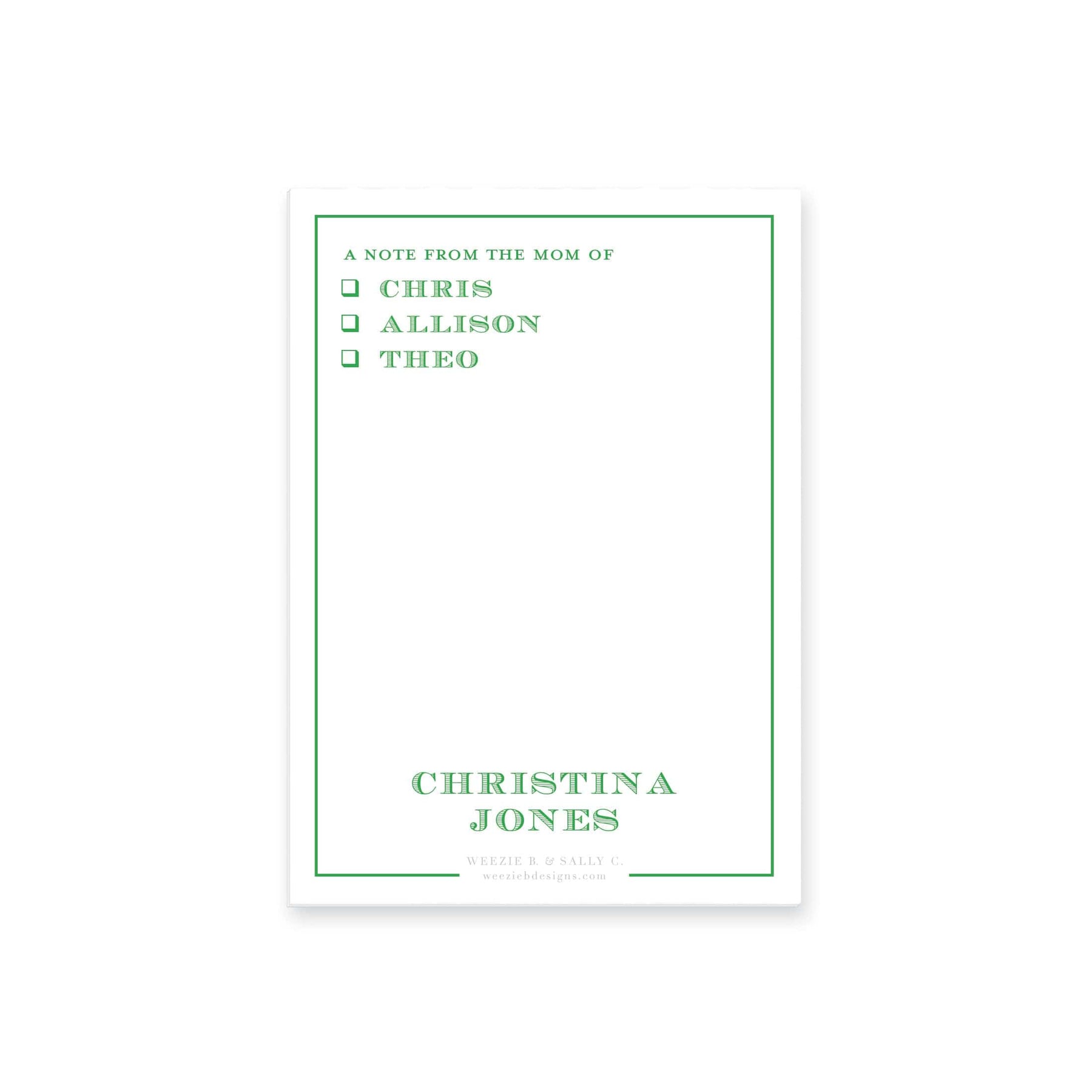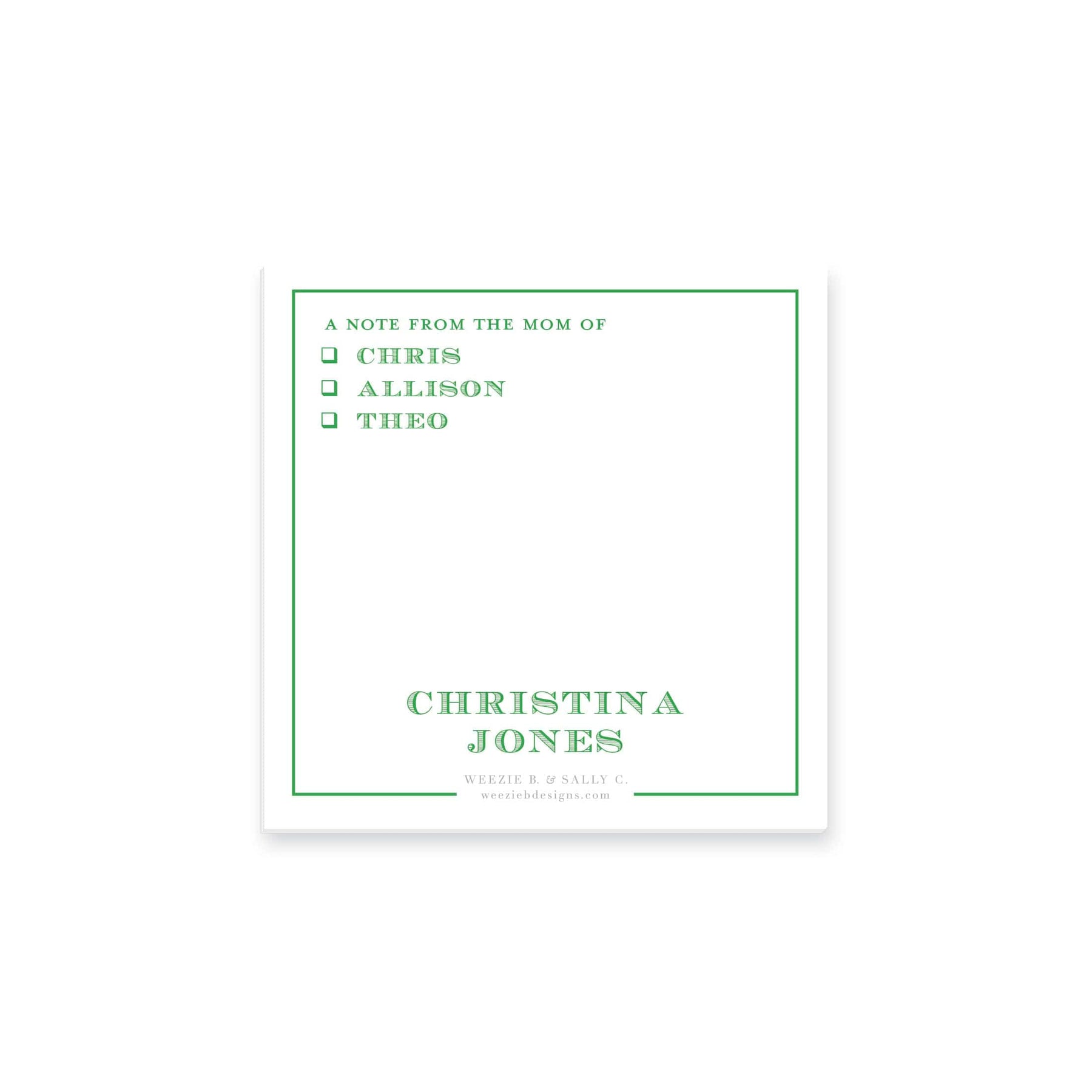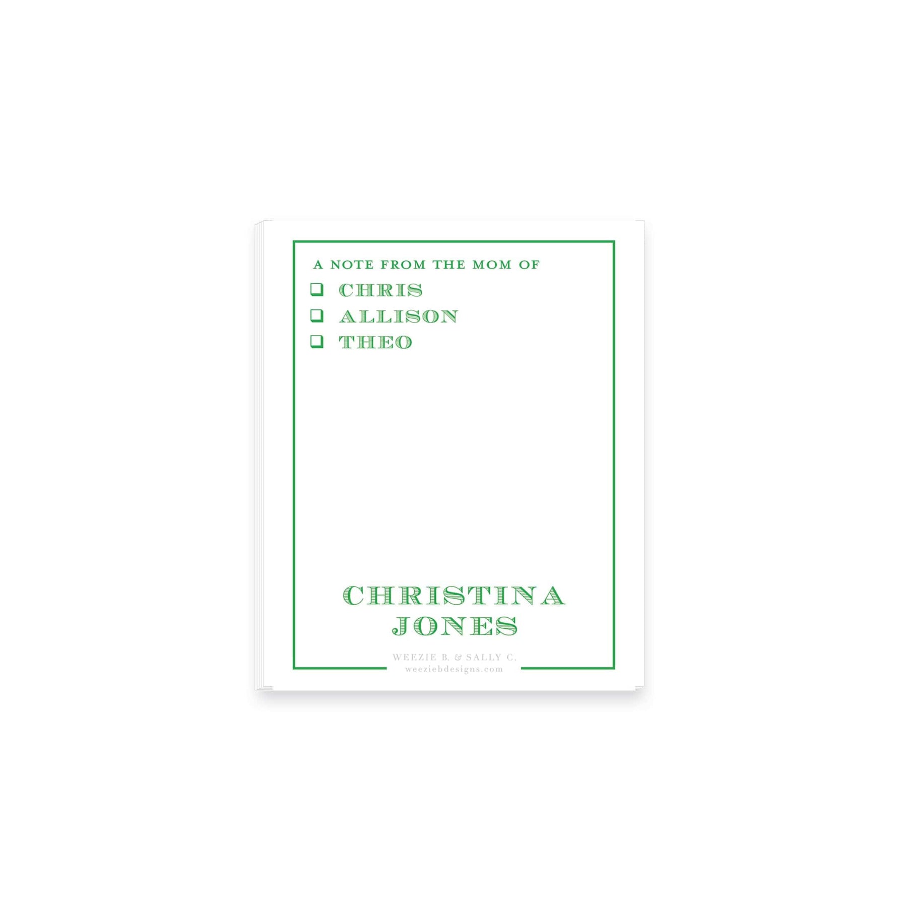 Our A Note From Mom Notepad makes life just a bit easier! Send a note with your child highlighted- it's useful and brings a little something special to your desk or counter!