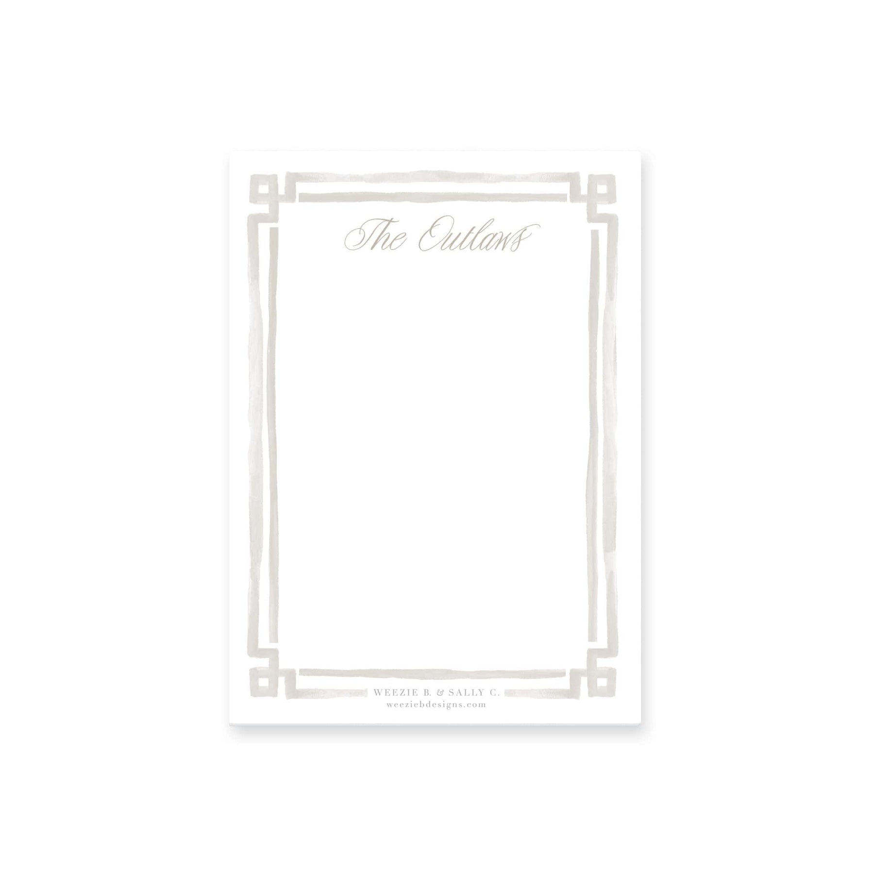 Watercolor Bold Double Border Notepad is classic and pretty.  This personalized notepad will bring a little beauty to your desk or counter!