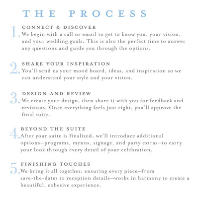 Your wedding is one of a kind — your invitations should be too. At Weezie B. Studio, we collaborate closely with brides to design bespoke suites that reflect your story, style, and celebration. Using a mix of watercolor and refined design techniques, we create artwork and layouts that are timeless, personal, and uniquely yours.