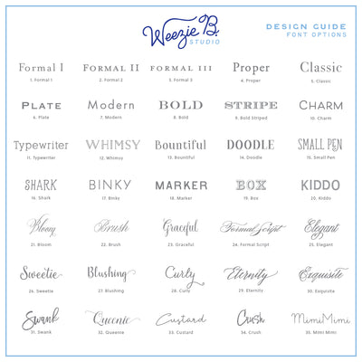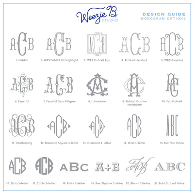 Looking to Personalize Your Design? Want to adjust the font, color, or monogram style? Explore our curated Design Guide to choose the look that feels just right for you. Our thoughtfully selected fonts, monograms, and color palettes make it easy to create a design that’s classic, versatile, and uniquely yours.