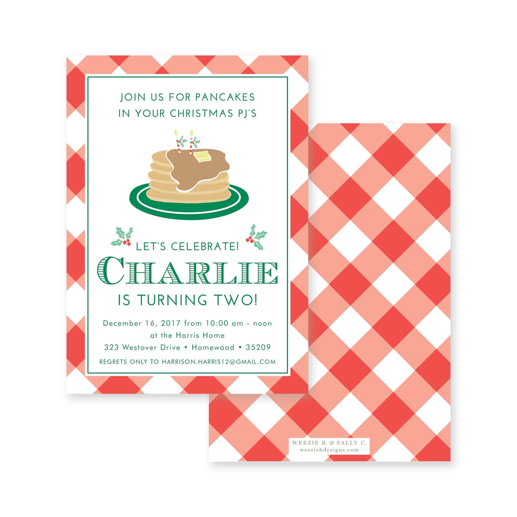 Our Pancakes PJs Christmas Invitation is such a fun and festive card for a Christmas jammies gathering! Put on your Christmas jammies and join us for a fun breakfast!