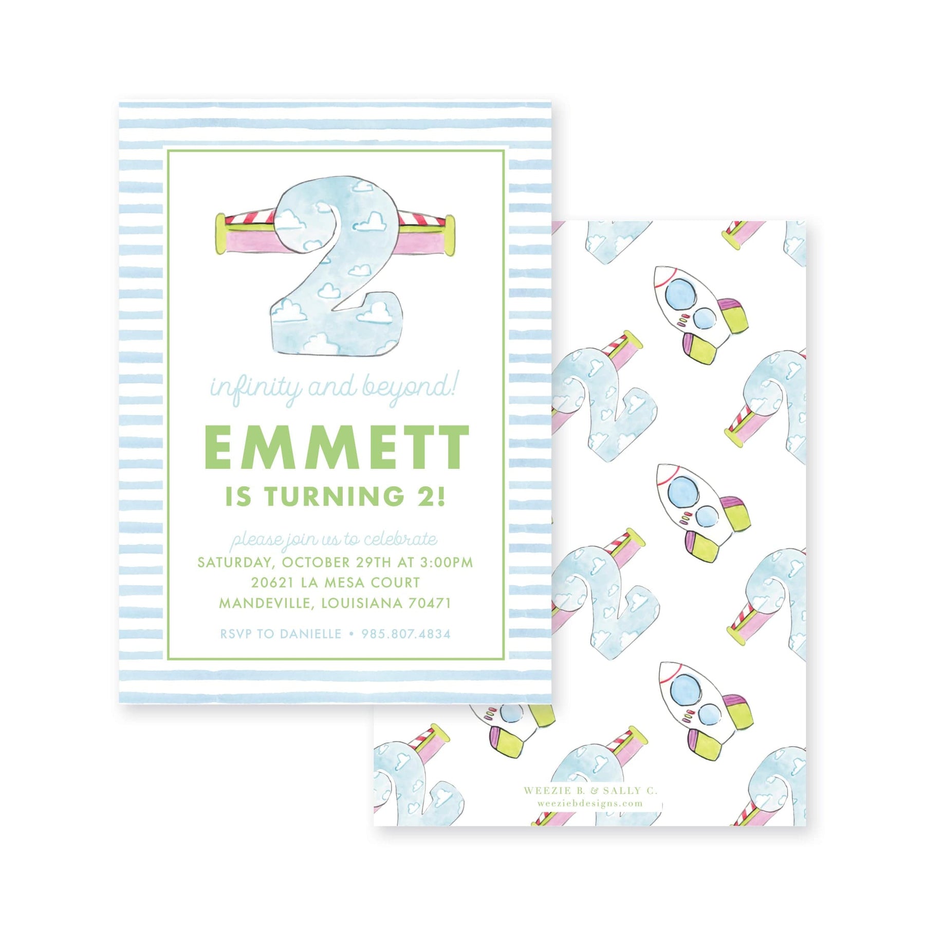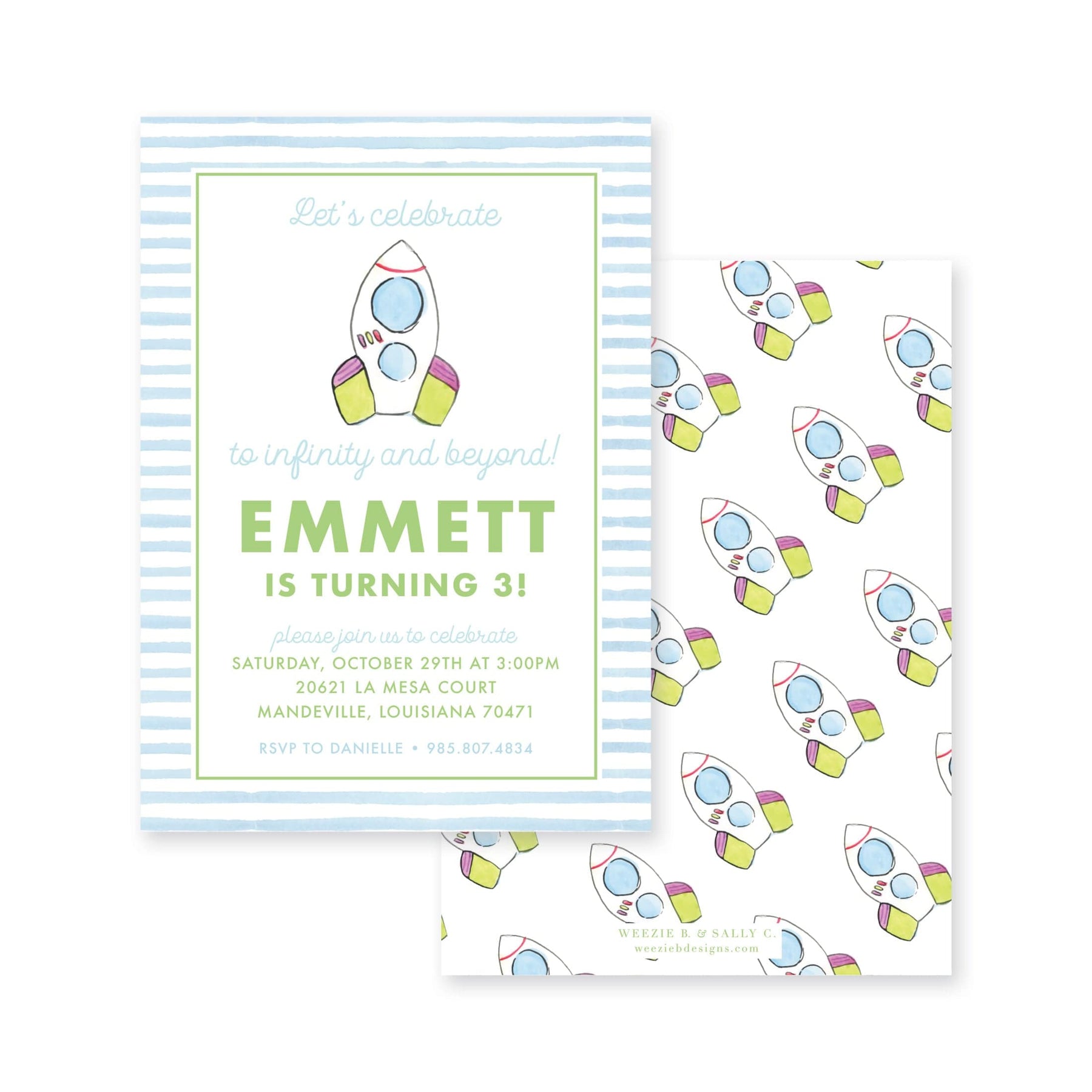 Does your little one love a certain space and cowboy movie? We think he'll love our Space Rocket Toy Birthday Invitation! With 2 options for the design, we hope there is one that will be perfect for your party.