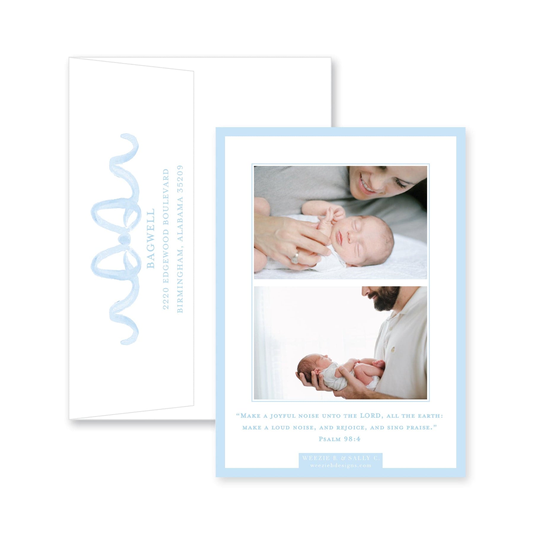 Sweet Watercolor Wreath and Bow Birth Announcement is classic and timeless. Send the news your new addition with a traditional and beautiful announcement.