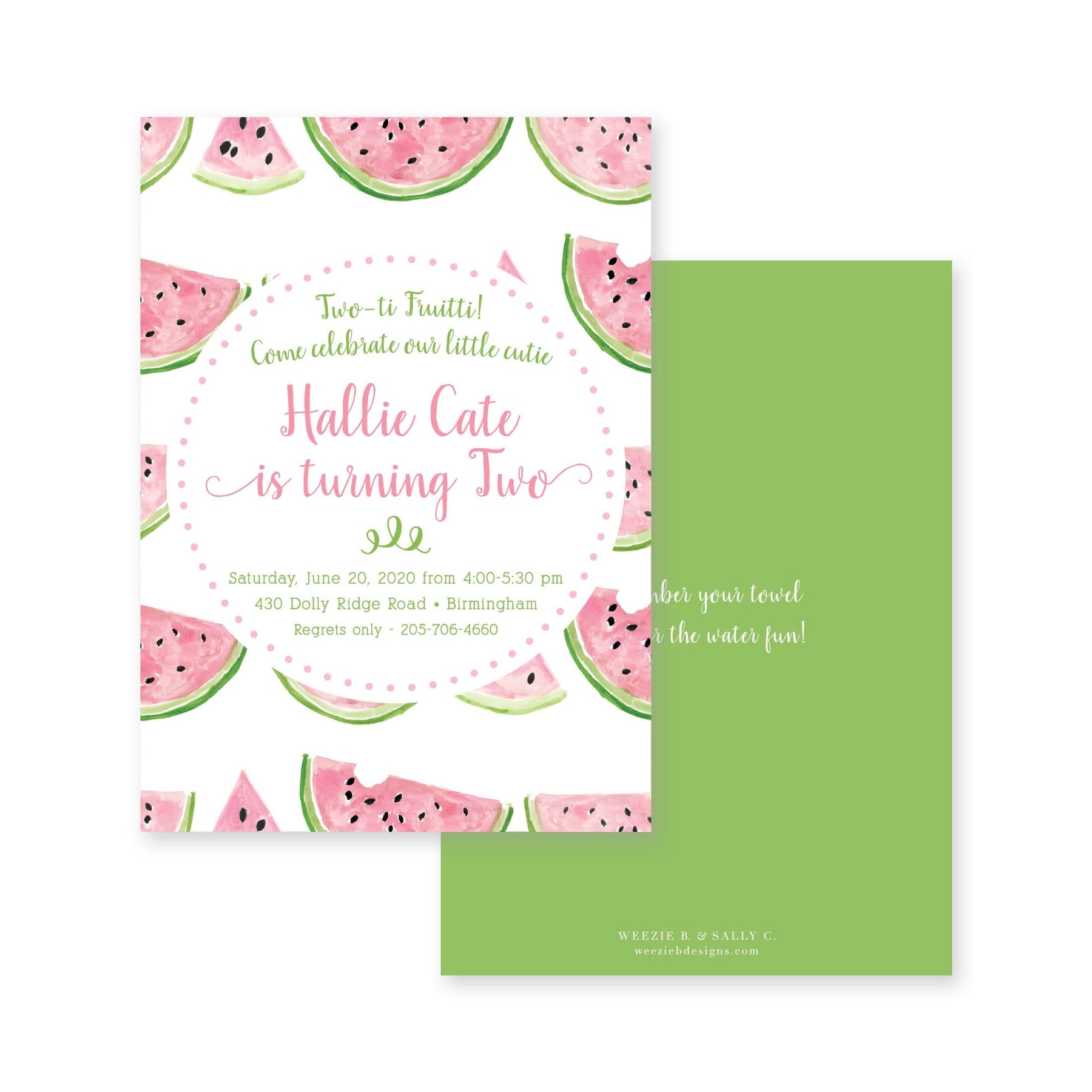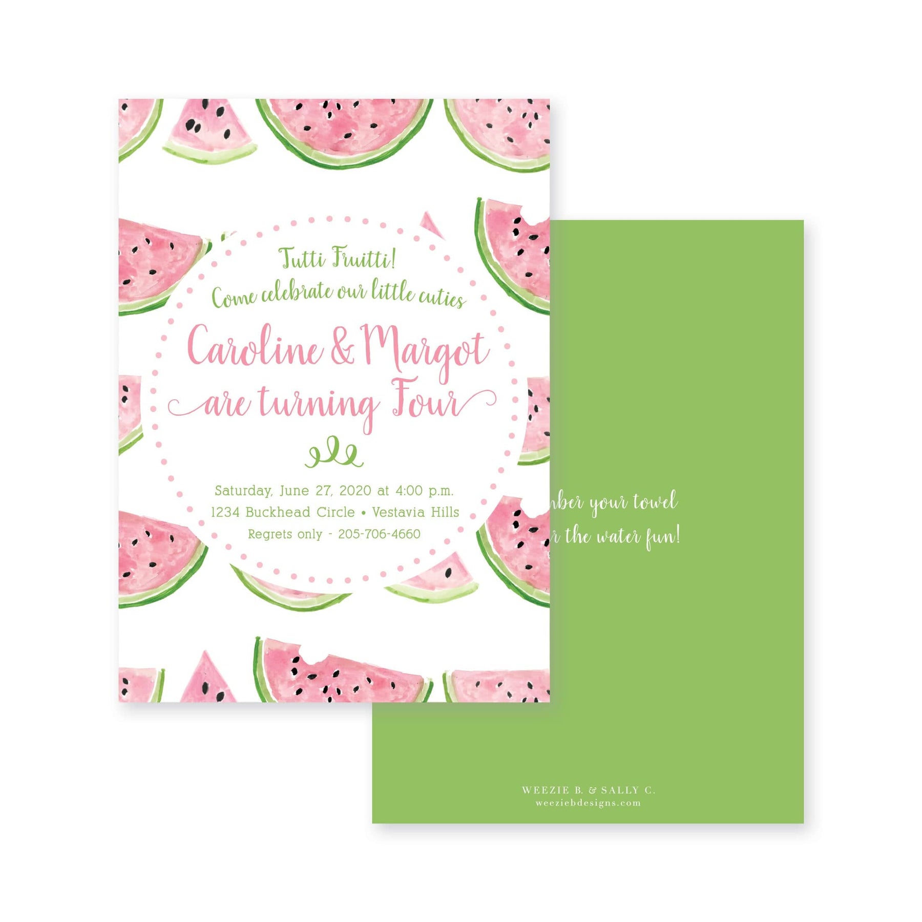 Our Sweet Watermelon Birthday Invitation is so cute you could slice it up and eat it! You can use this for a first birthday or it's also tutti fruitti cutie for other ages!